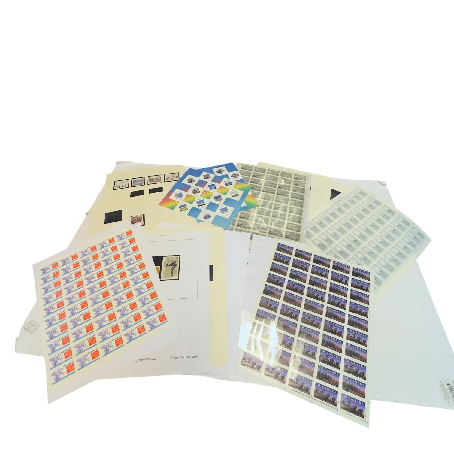 Folder of Canada Stamps Featuring Some Full Sheets with Selvage (Innsbruck Winter Games, 1951 Trains, and 38 Cents) * Also some used stamps