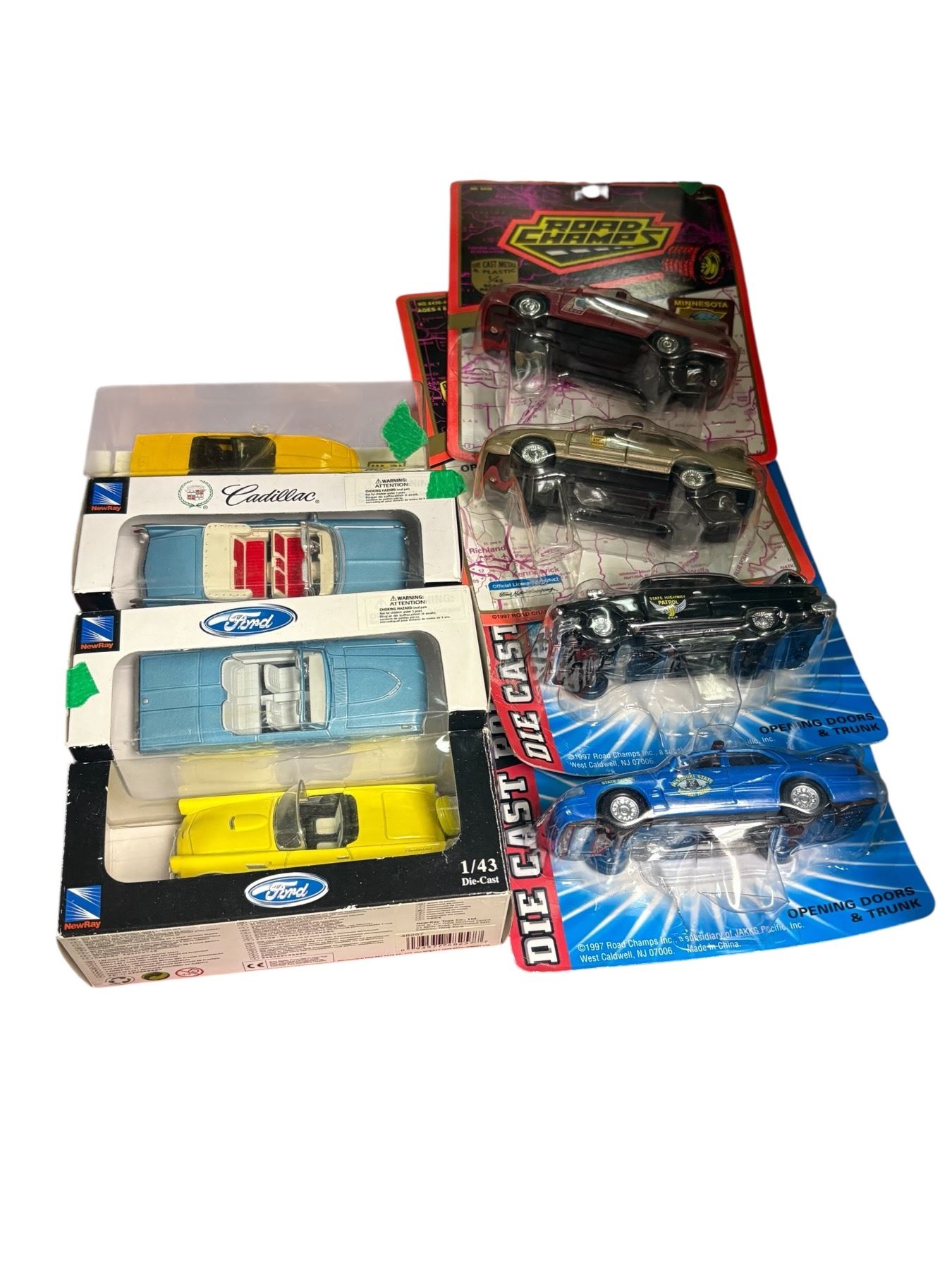 Collection includes 8 diecast cars by Ford and Road Champs. Models feature detailed designs and represent different Ford vehicles. Made from metal and plastic components, suitable for display. Manufactured by Road Champs, known for realistic diecast replicas, and officially licensed Ford models.