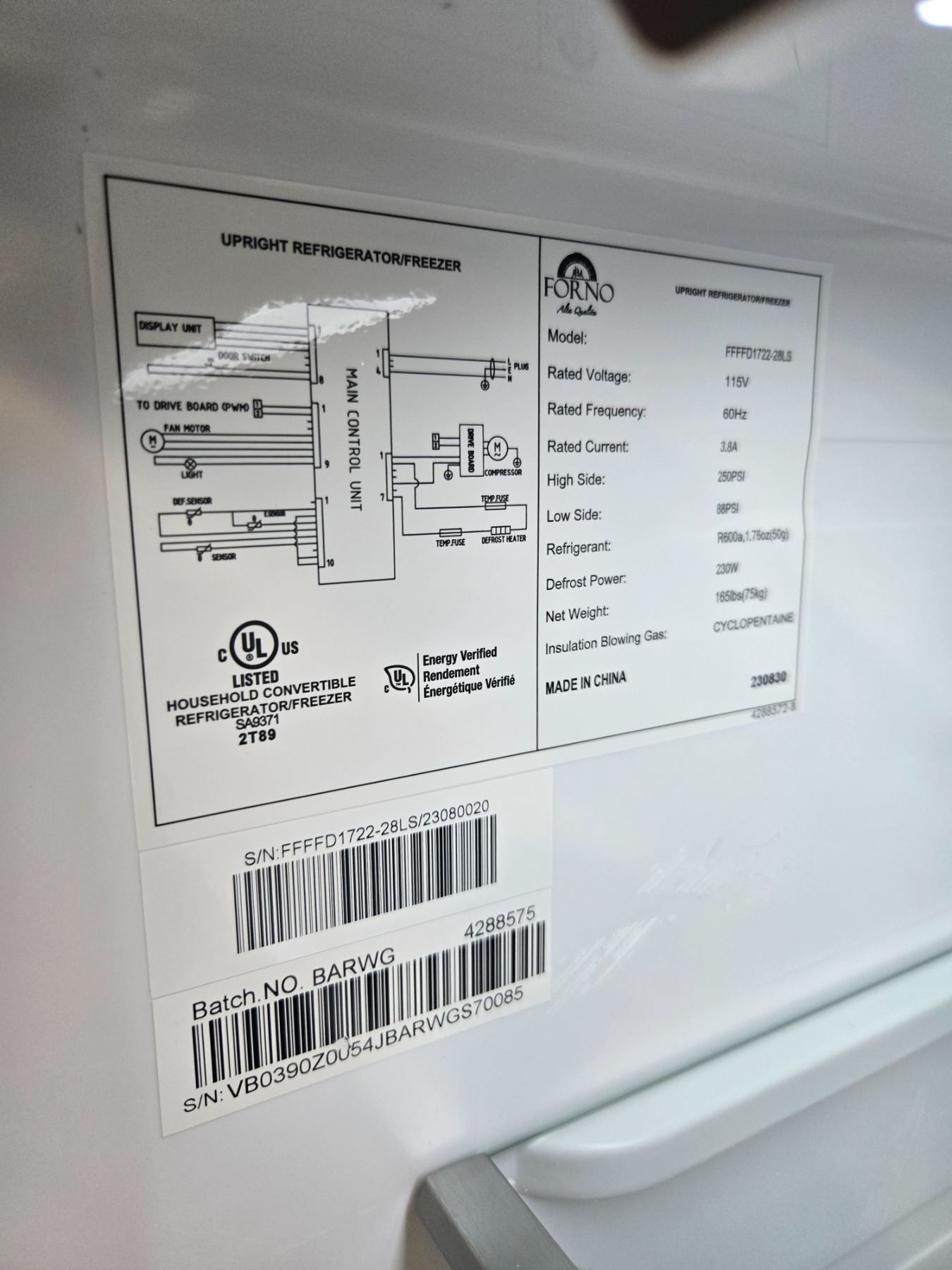 Forno Maderno Convertible Refrigerator/Freezer - (Tested - Lights on, Seems to not cool down)