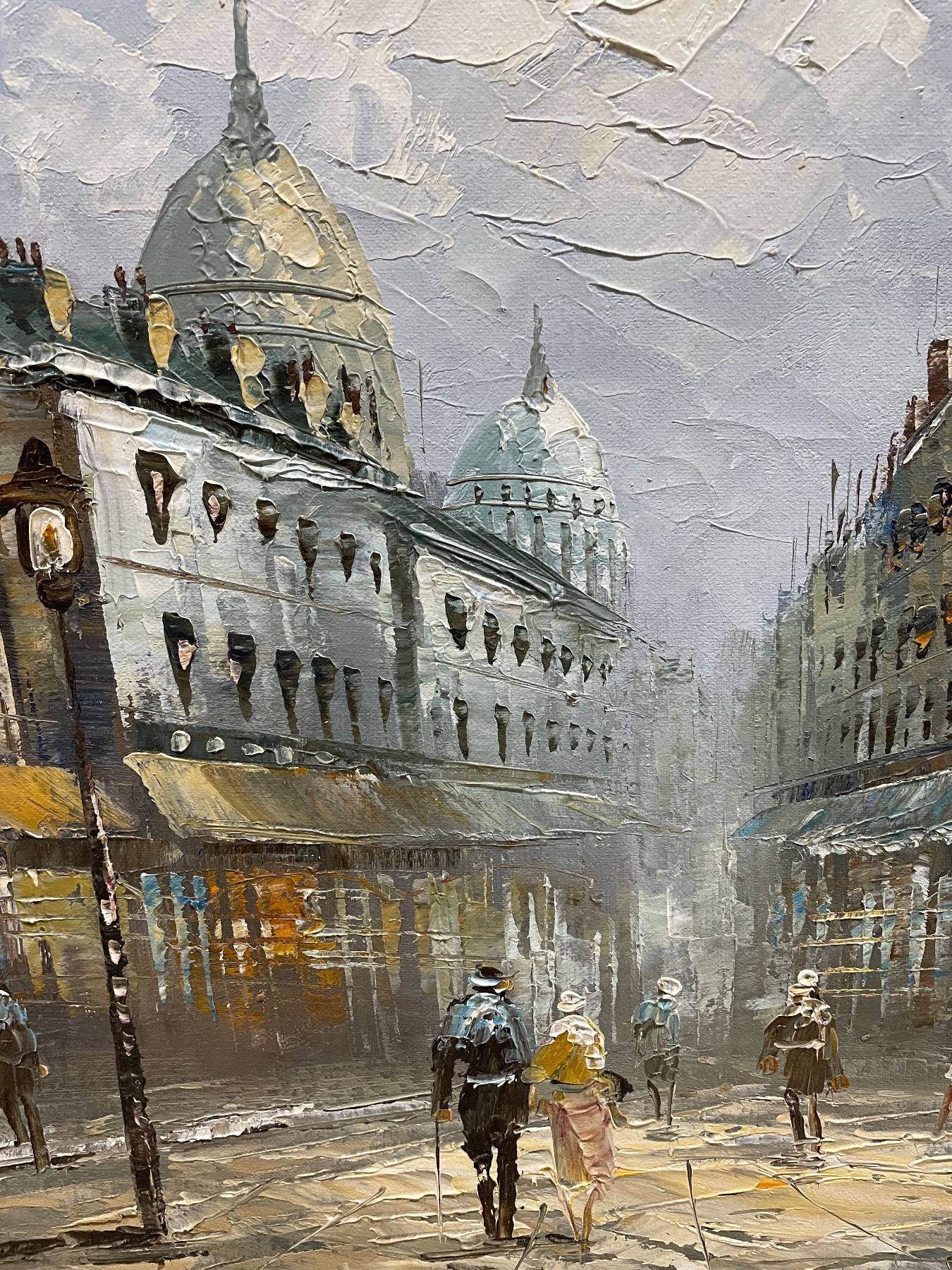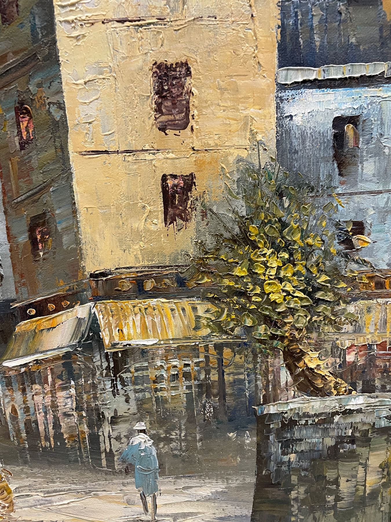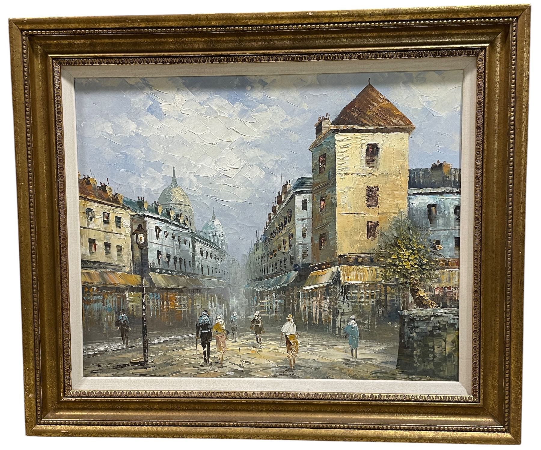 Framed European City Street Scene Painting, H28" x W32"
