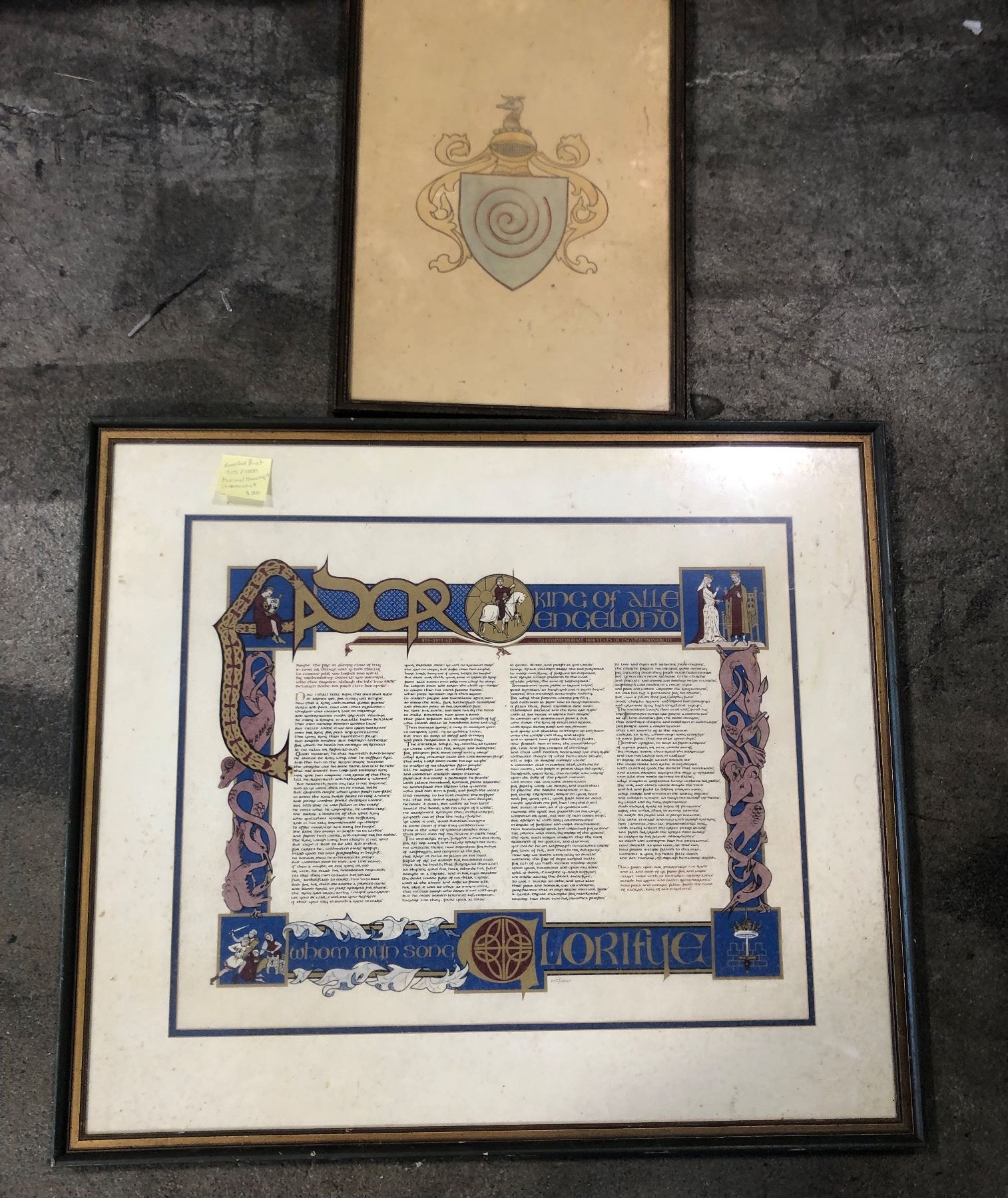 Framed Medieval Manuscript Ornamental Limited Edition #105/1000 (approx. 33in x 29 1/2in) wall hanging w/ framed print wall hanging