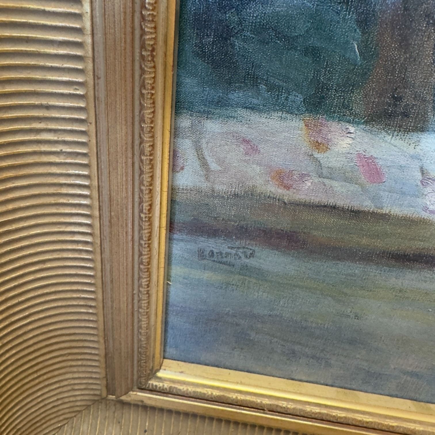 Framed original acrylic painting on board depicting a landscape by Bannister. Signed by the artist. Presented in a gilted decorative frame measuring 33x27.5-Inch. Item is as pictured.