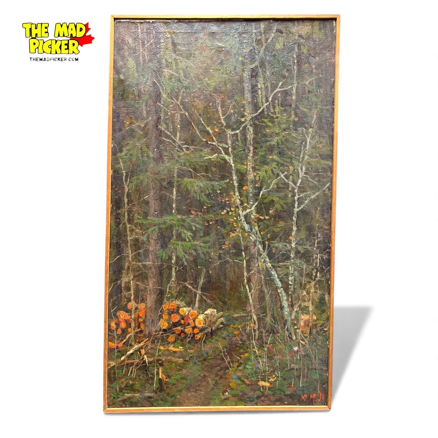 Framed Original Painting on Canvas Forest Seen Signed H. Maaahekob 16x27.5"