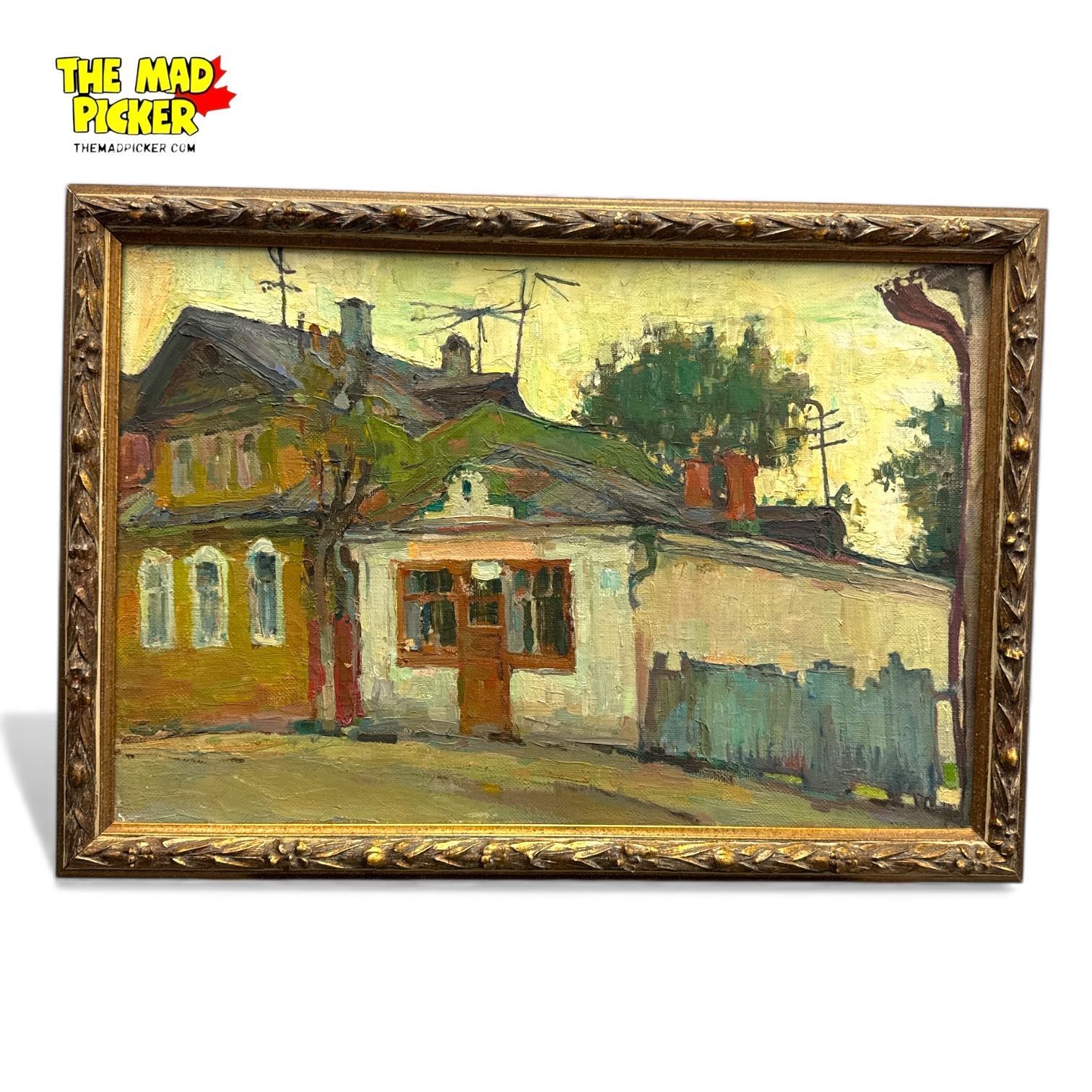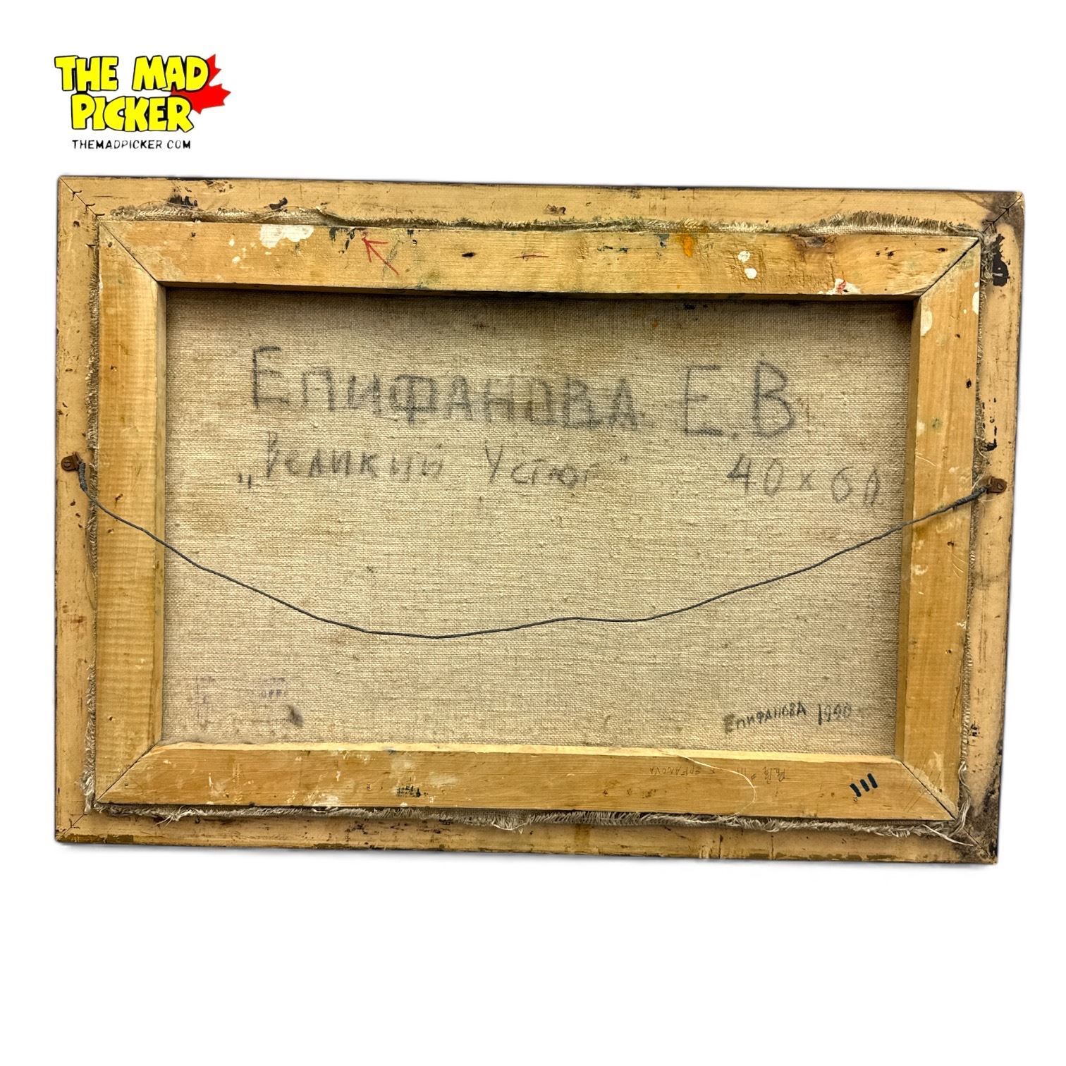Framed Original Painting on Canvas Signed in Cyrillic 1990 26.5x19"