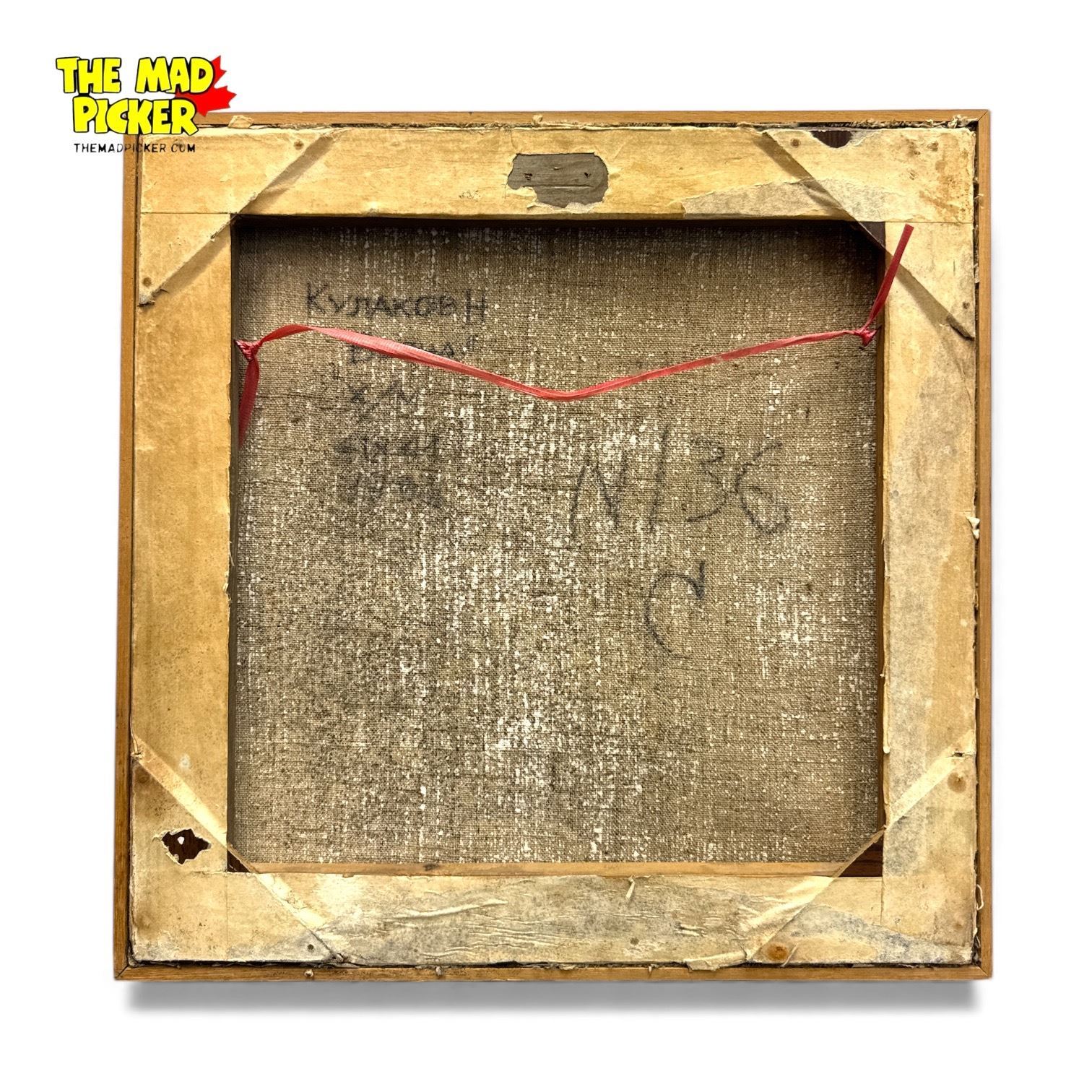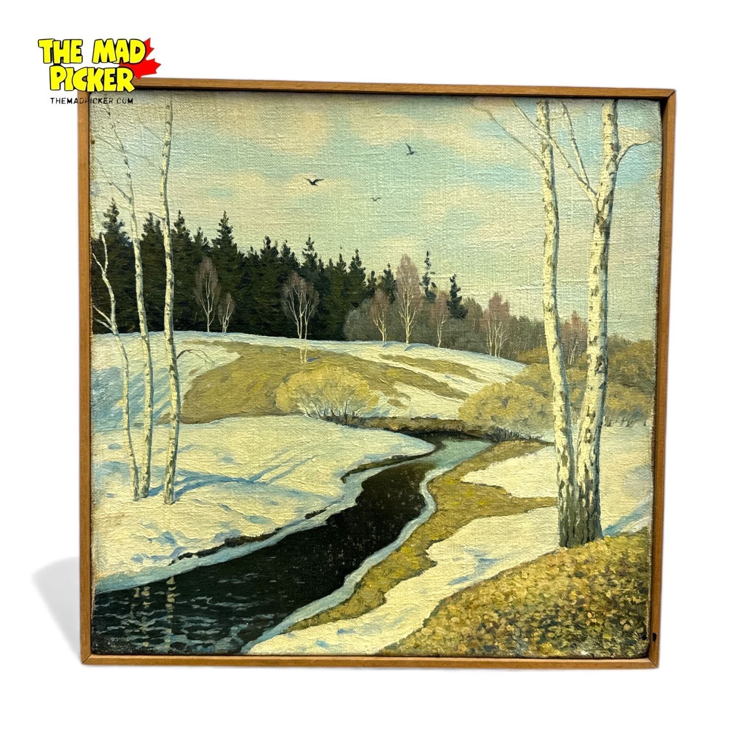 Framed Original Painting on Canvas Winter Scene Artist Signed in Cyrillic 16.5x16.5"