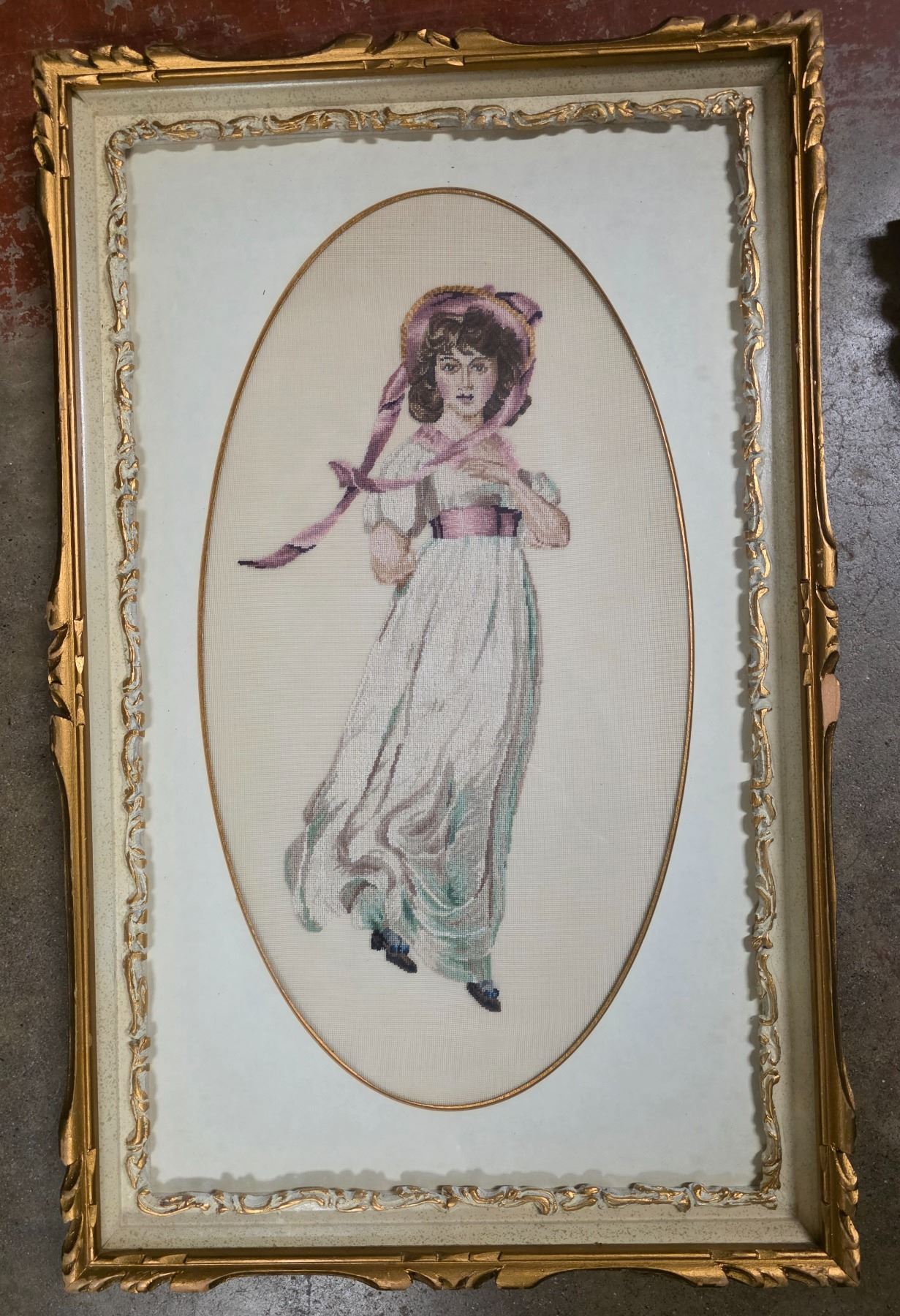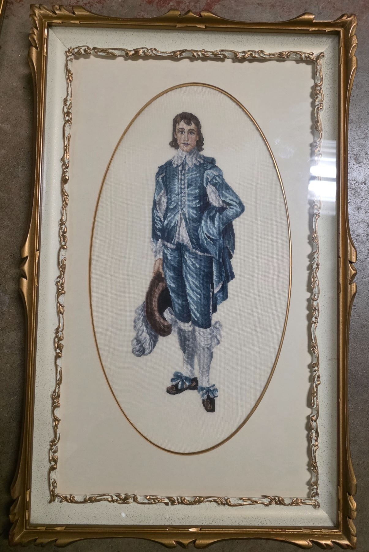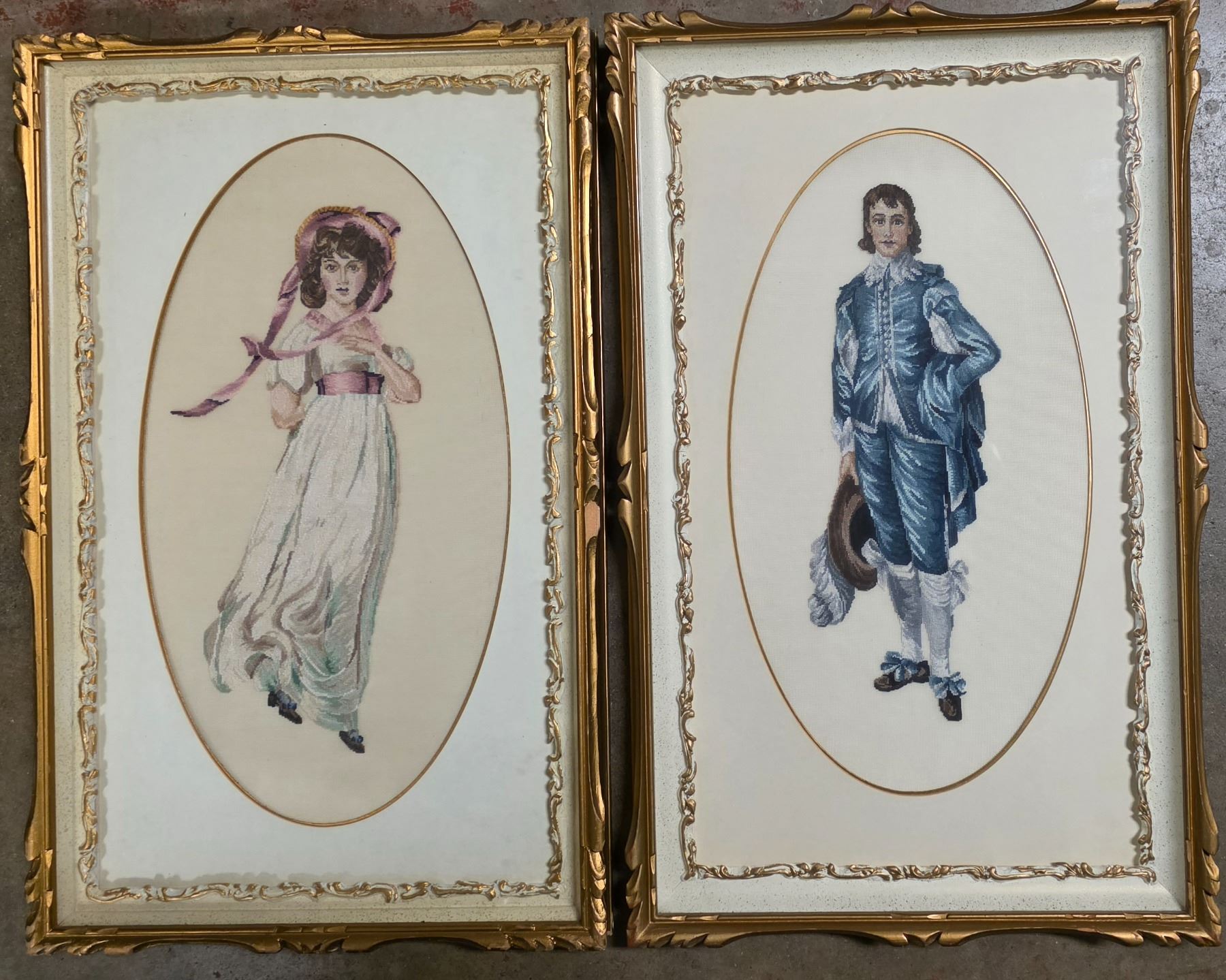 Framed Pair of Victorian-Style Needlepoint Figures – Boy & Girl