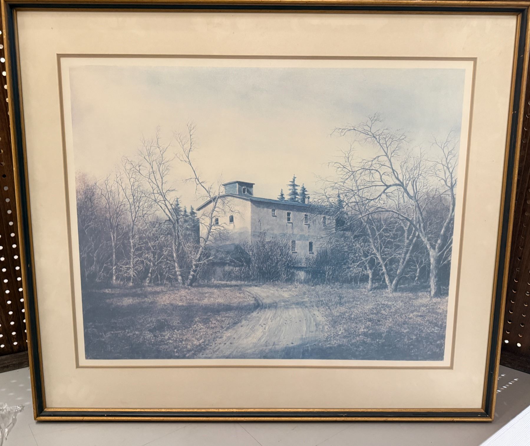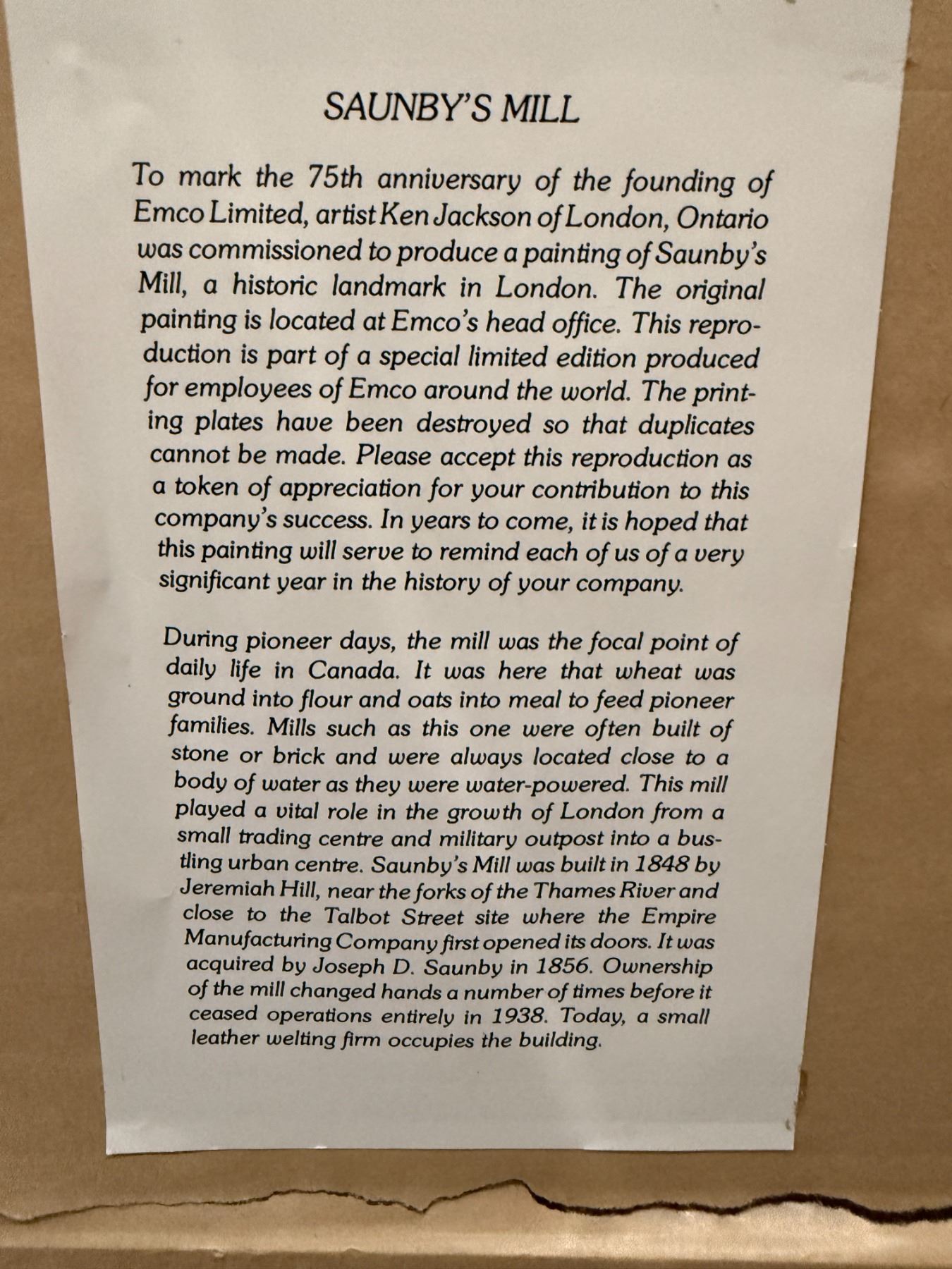 Framed Print of Saunsby's Mill in London, Ontario by Local Artist Ken Jackson (Double matted in a 36" x 32" frame)