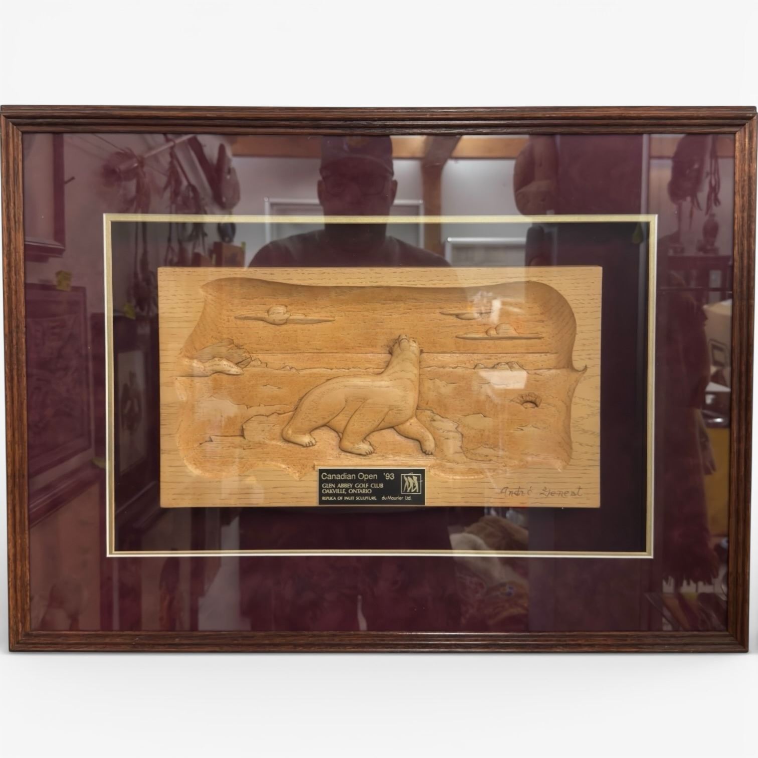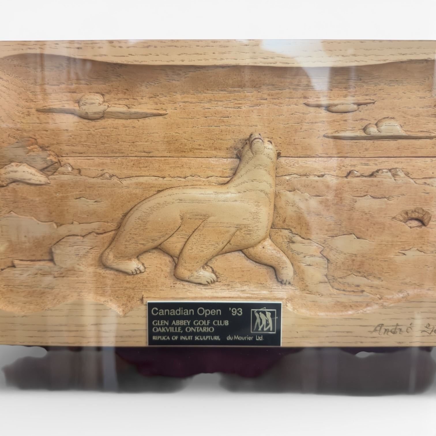Framed Replica of Inuit Carving by Andre Genest * Presentation Plaque by Glen Abbey Golf Club '93 * Framed dimensions: 26" x 20"