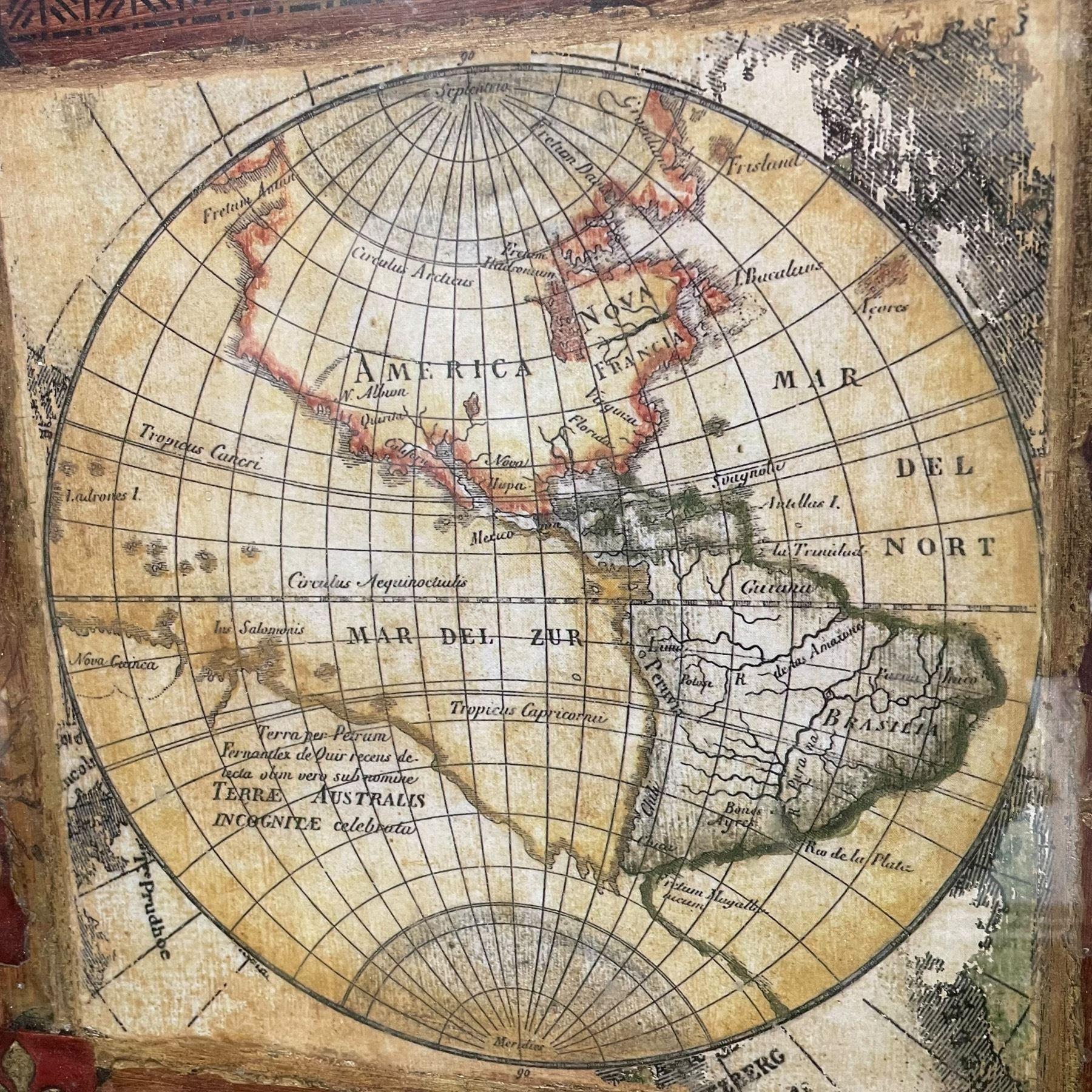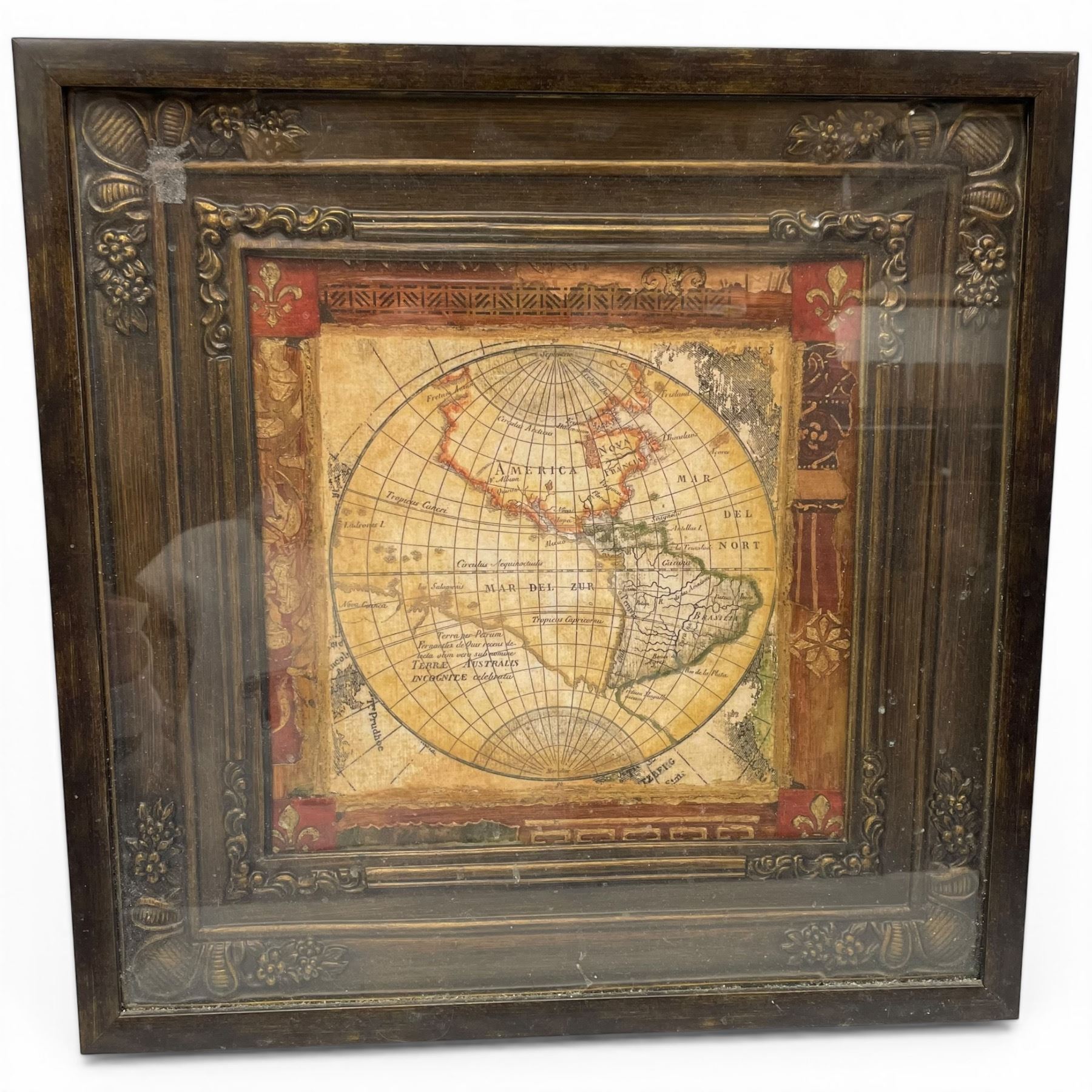 Framed Reproduction of an Antique Map (frame dimensions: 18" x 18")