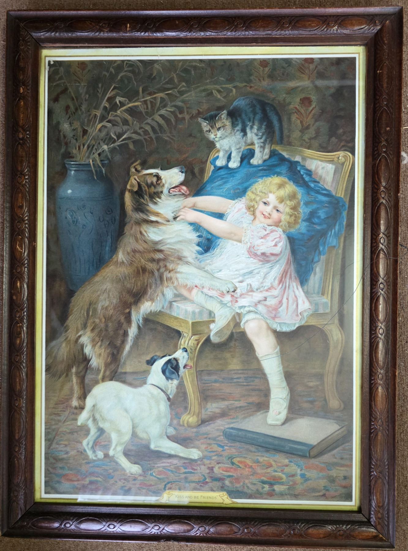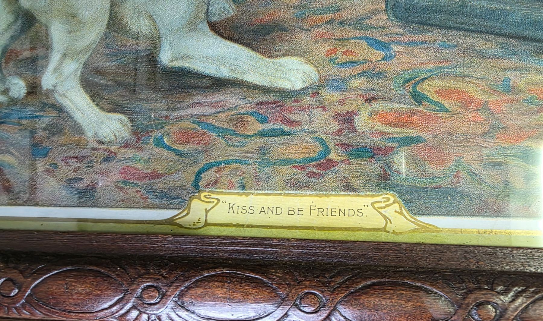 Framed Victorian Genre Print of Child with Dogs