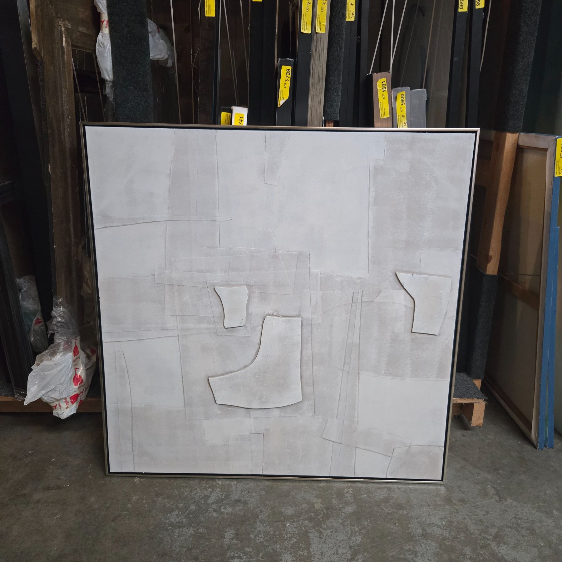 Framed White Toned Abstract Art on Canvas - 40x40"