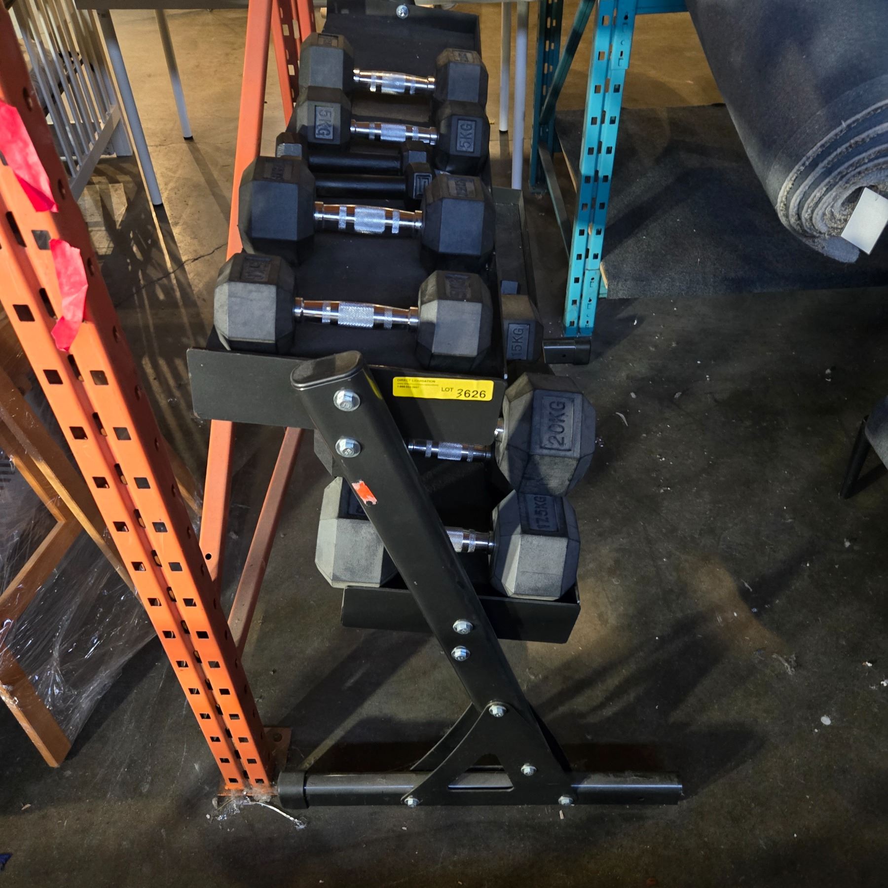 Free Weight Rack w/ Dumbbells - Various Weights (5, 7.5, 17.5, 20, 15kg)