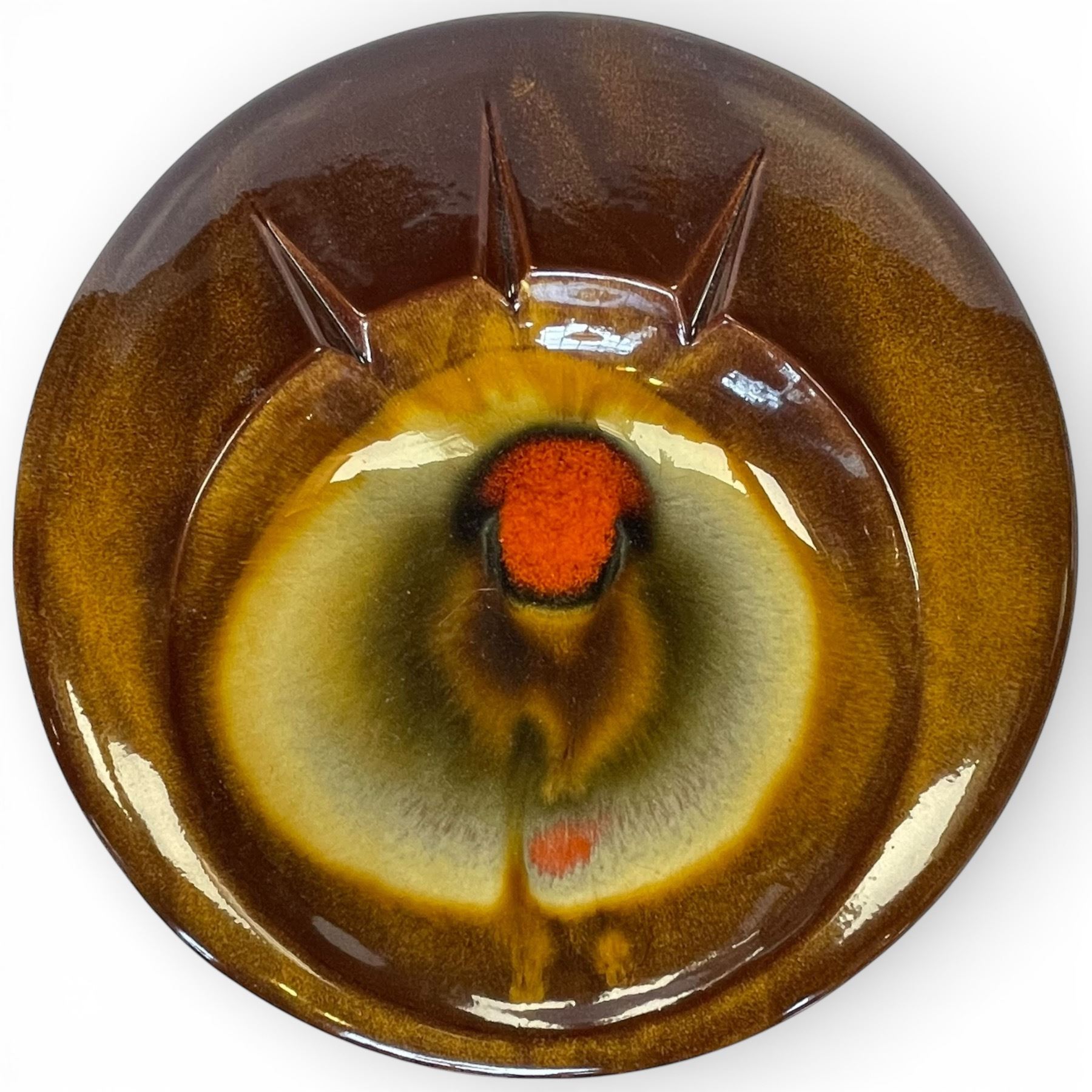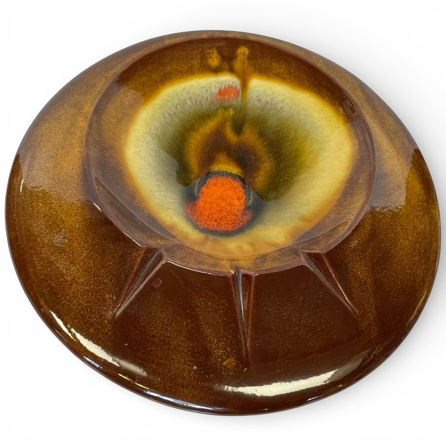 Freeman McFarlin Originals vintage ashtray plate from the Fine Art Line. Produced in El Monte California. Measures 11-Inch in diameter. Known for artistic and high-quality ceramic designs. Item is as pictured.