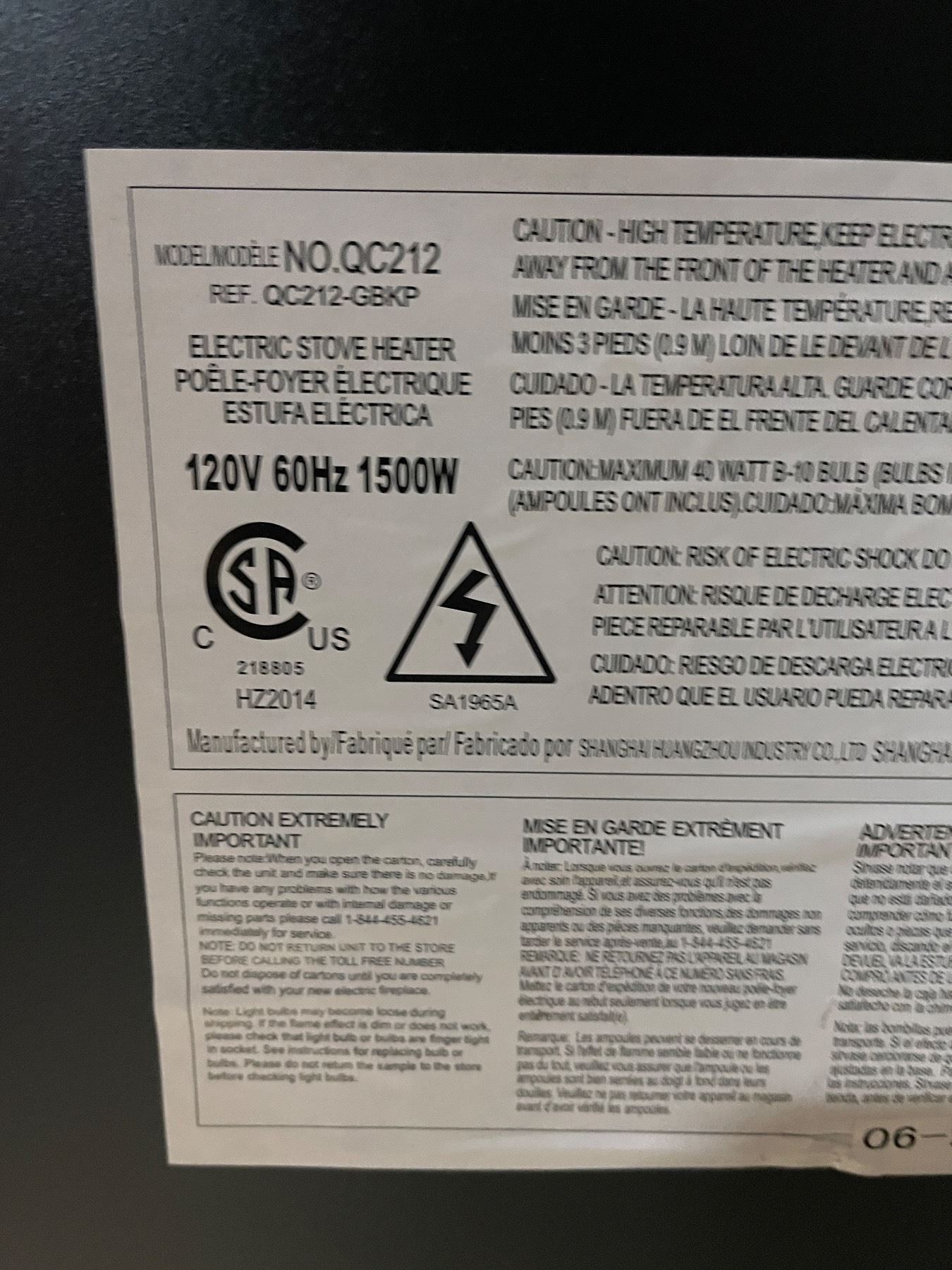 Freestanding Electric Fireplace Heater (Model: QC212)