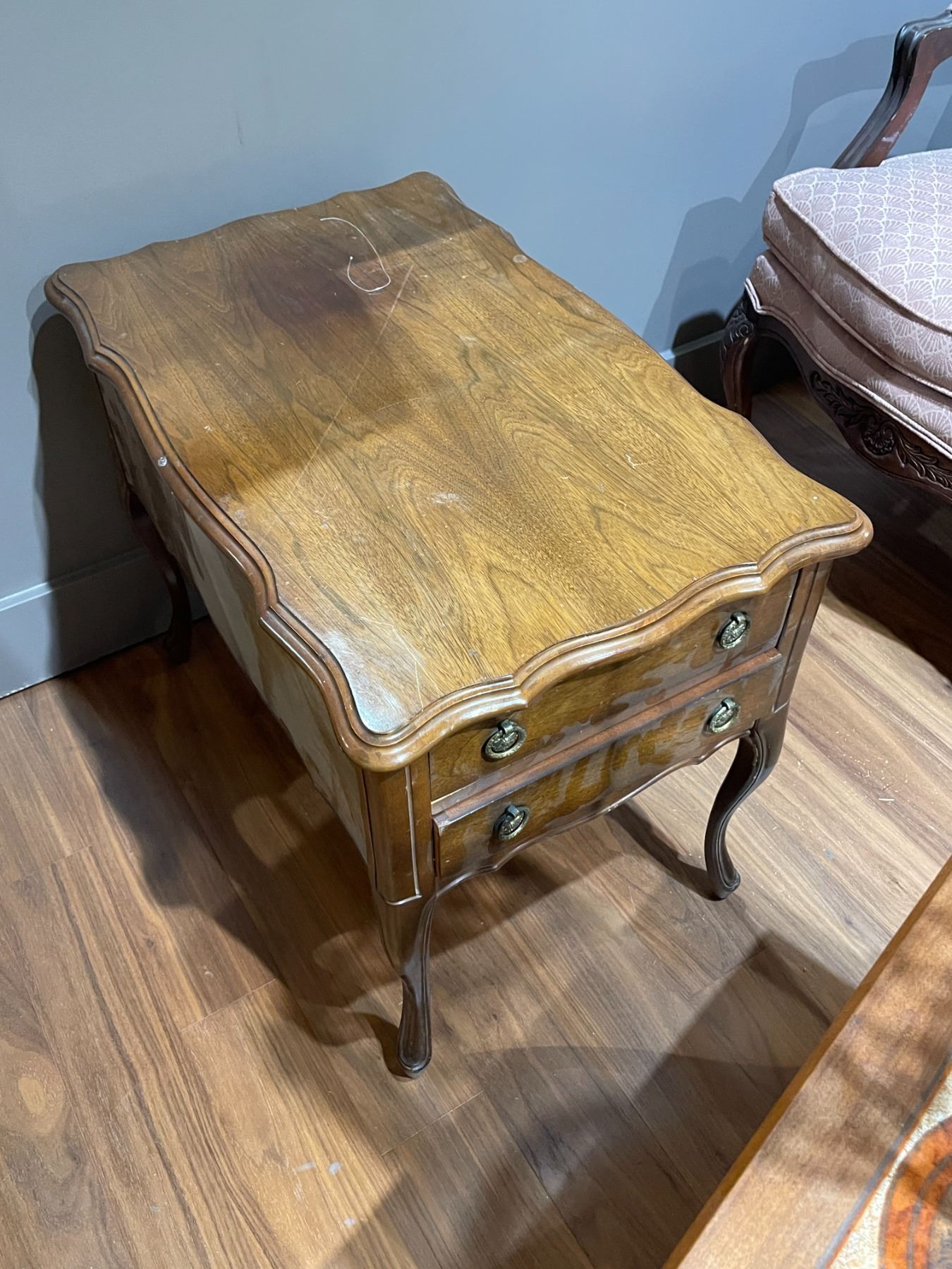 French Provincial Stye 2 Drawer End Table (18" W x 28" D x 22"H)