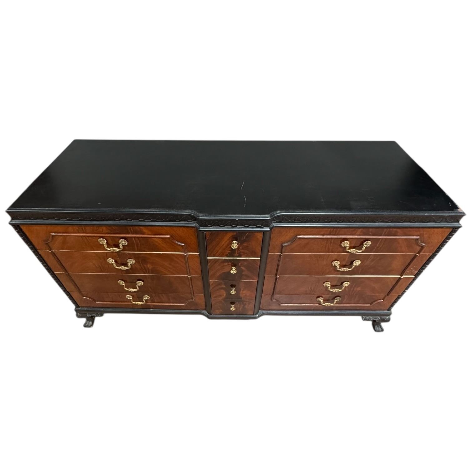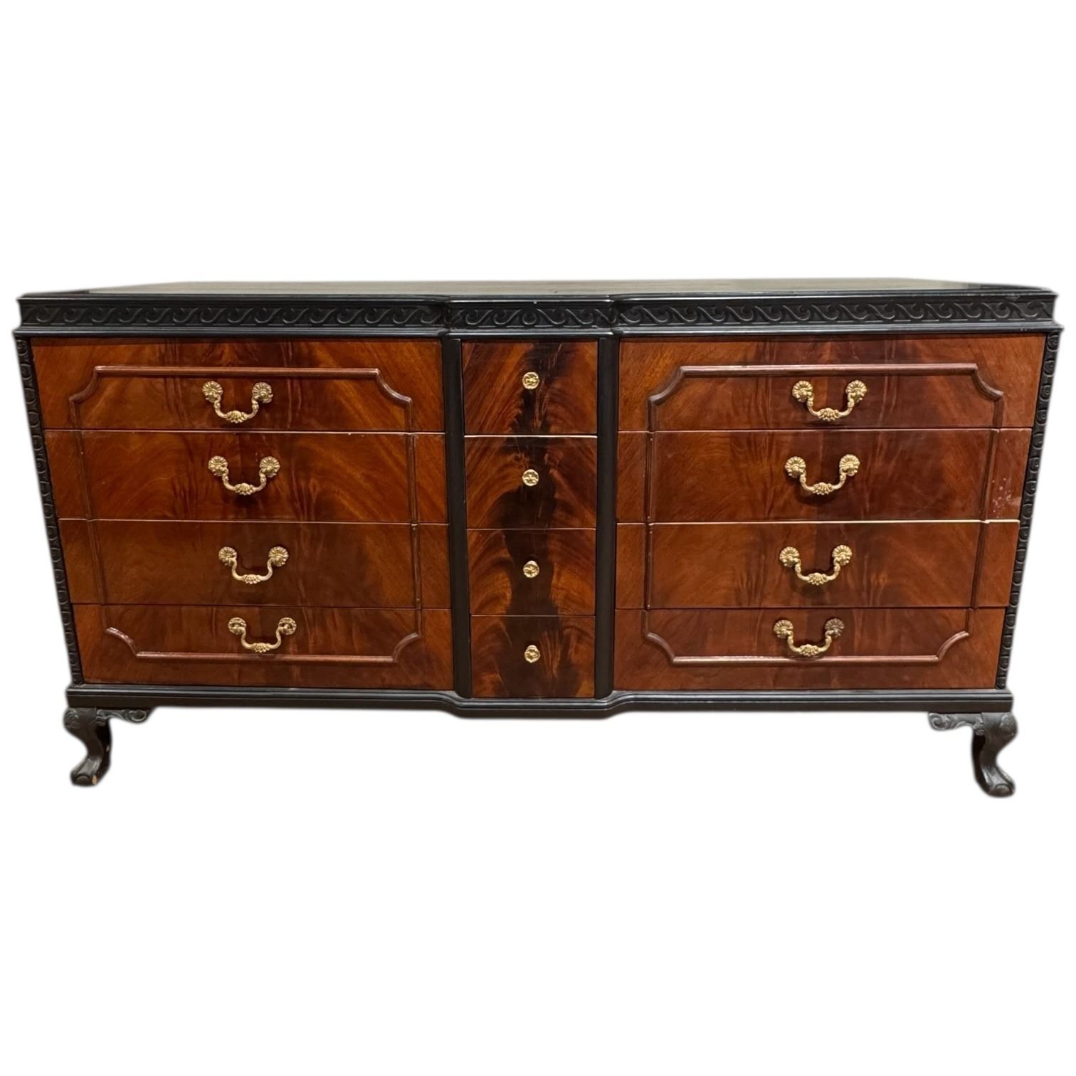 French Provincial Style Flame Mahogany Dresser with Black Edge Detail (23" x 67" x 35" tall)