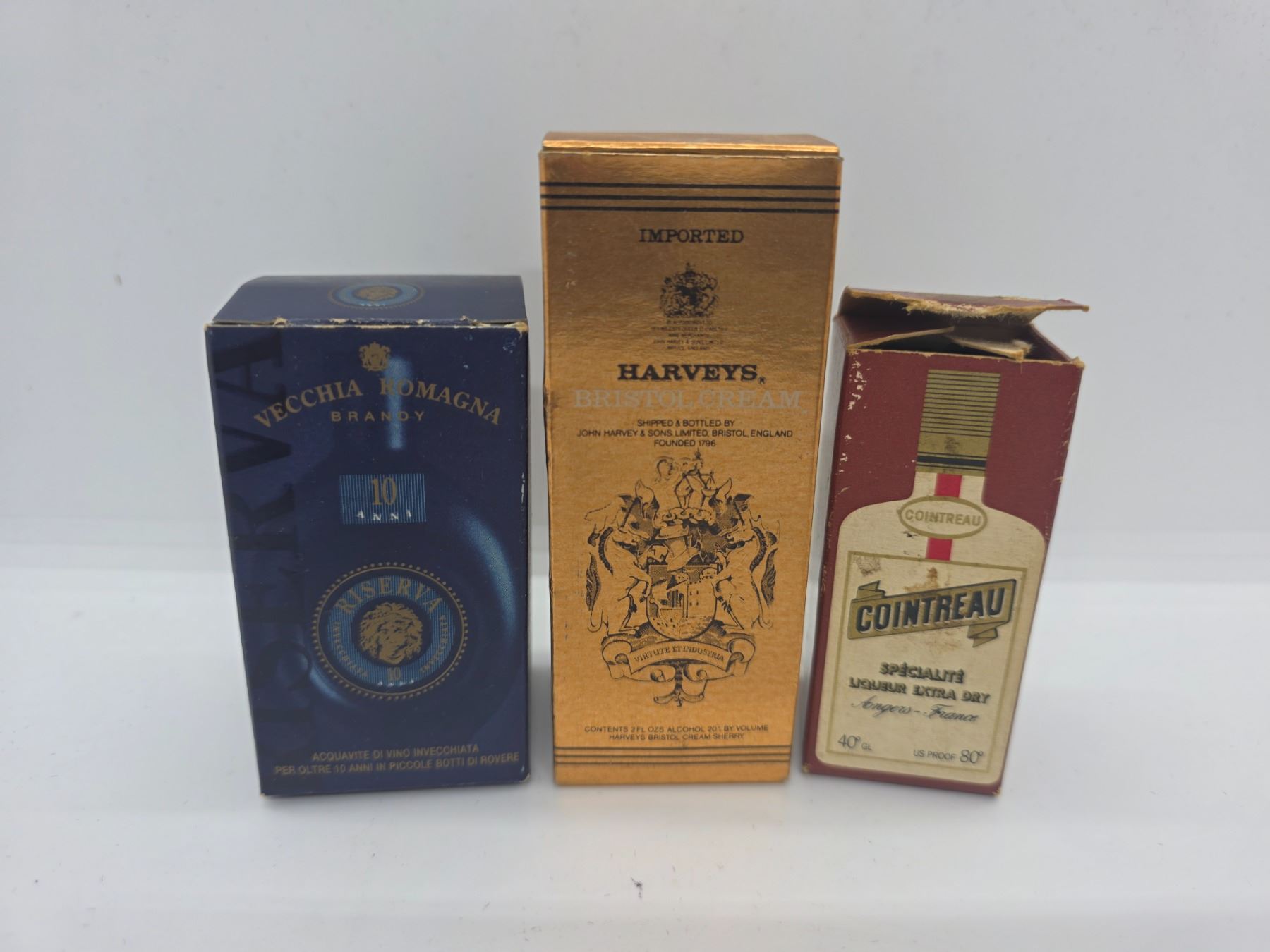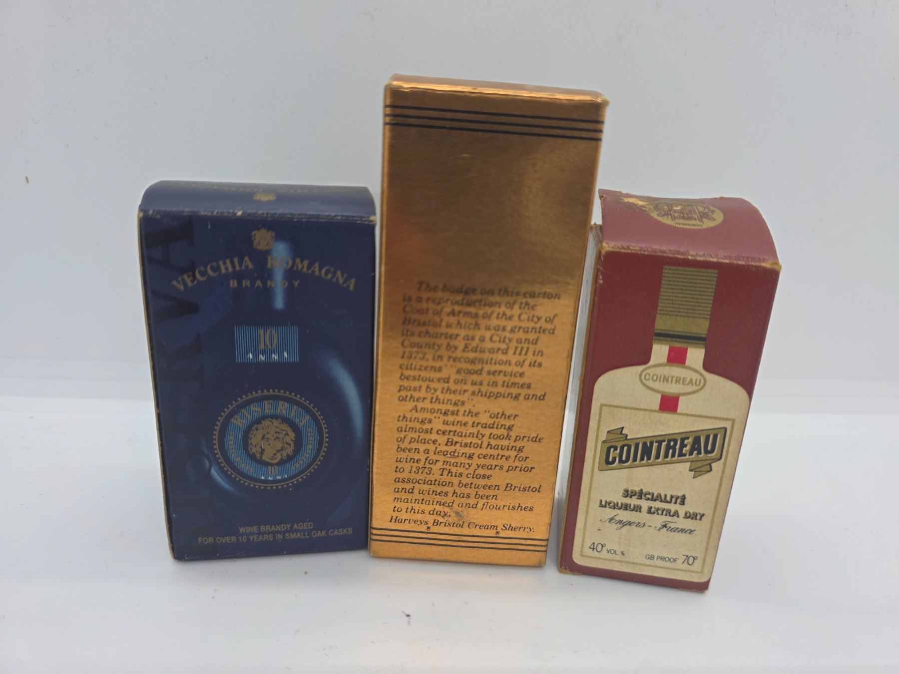 Full 50ml Harvey's Bristol Cream and Vecchia Romagna Brandy - Empty 23ml Cointreau - All in original Boxes