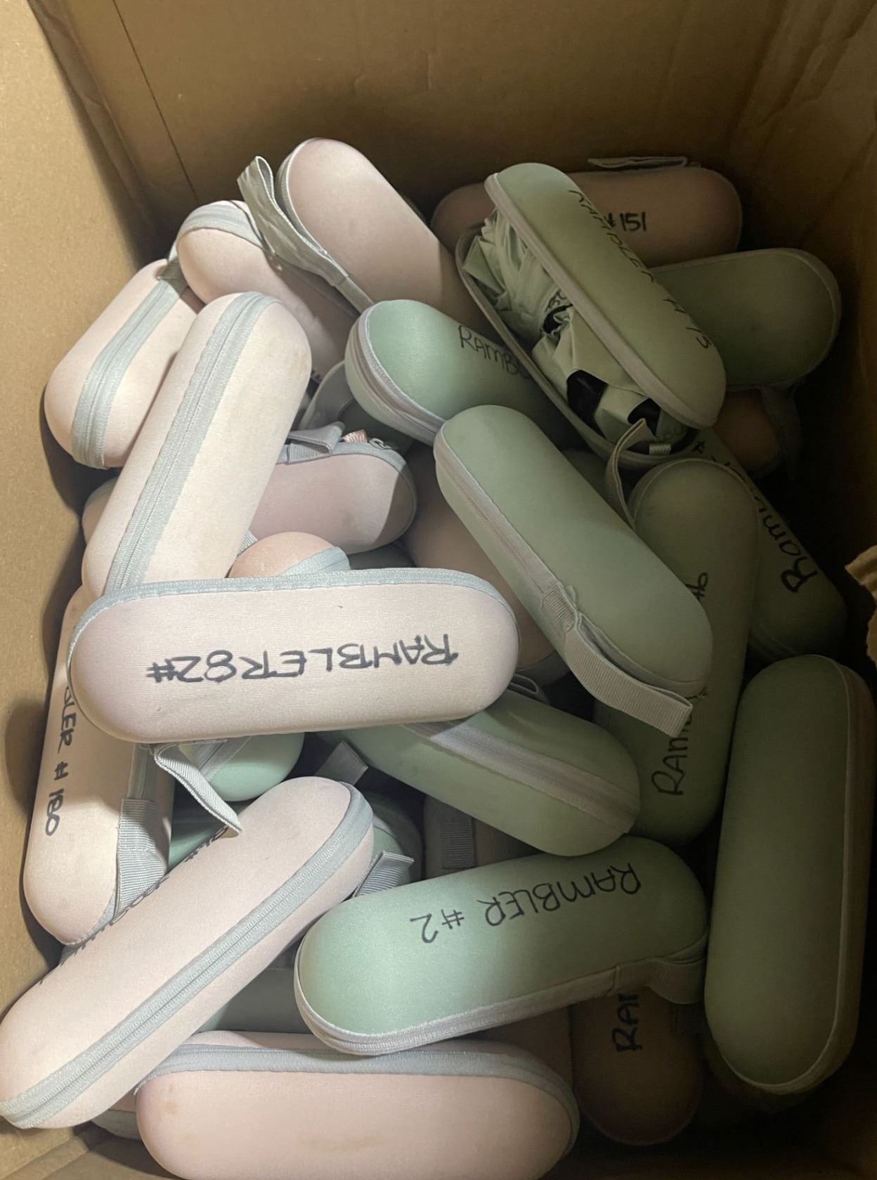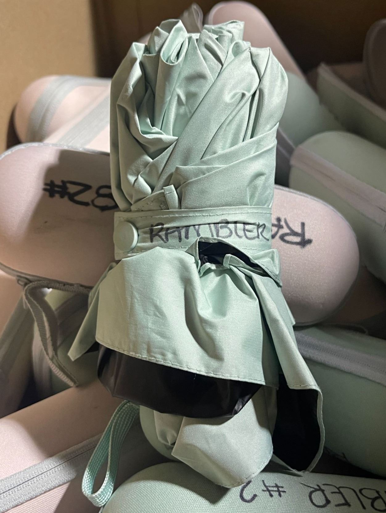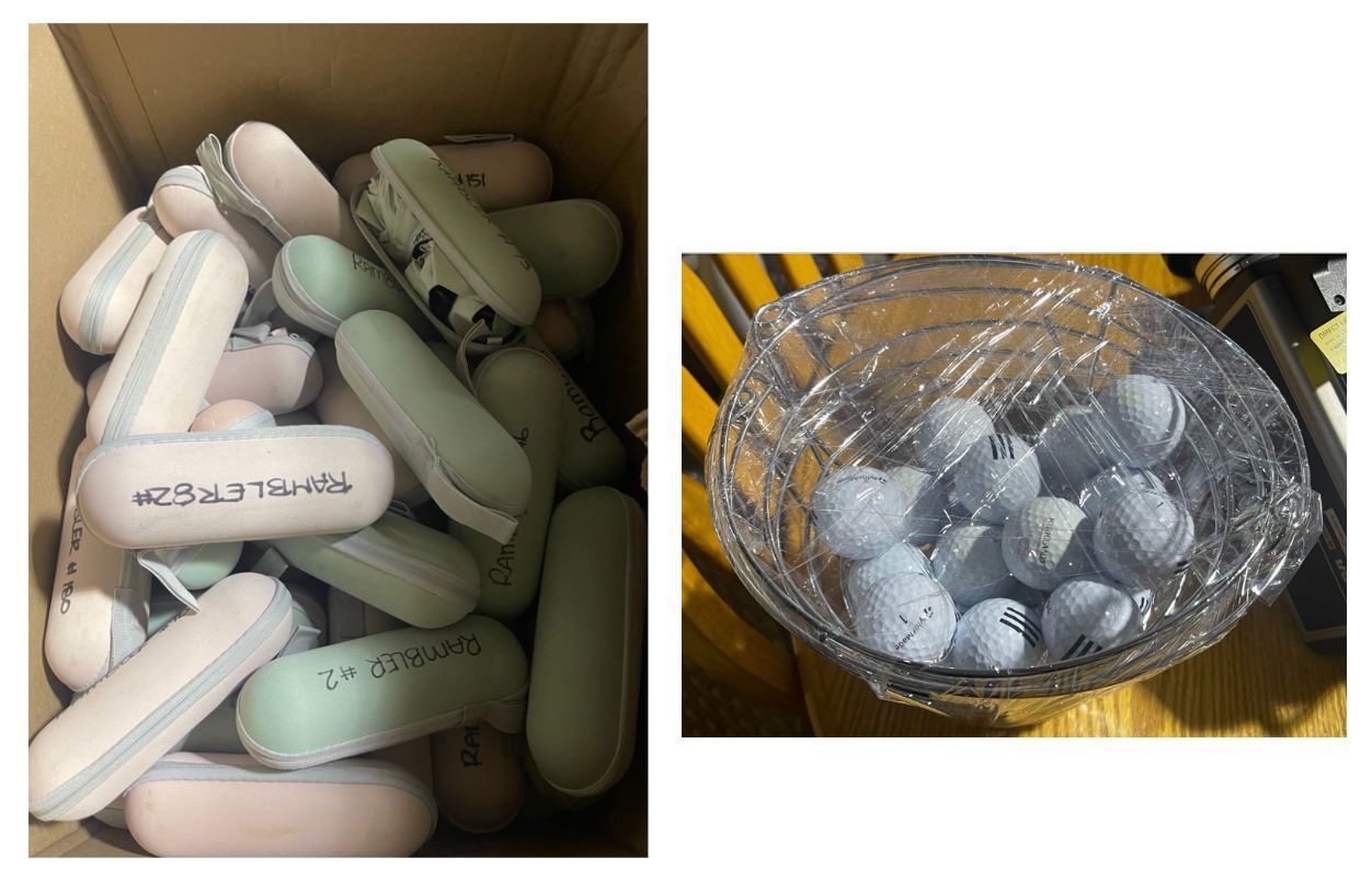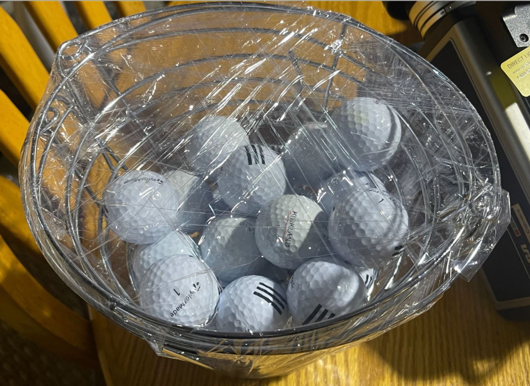 Full Box of Compact Umbrellas and Basket of Golf Balls