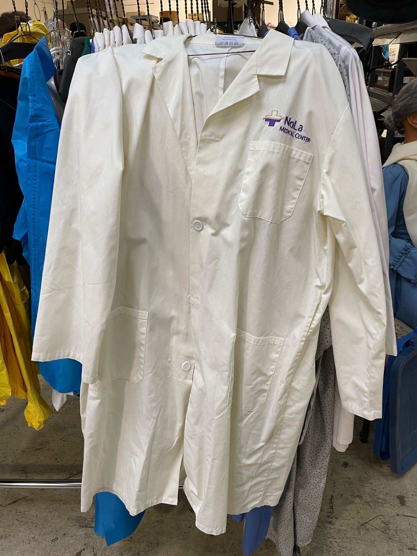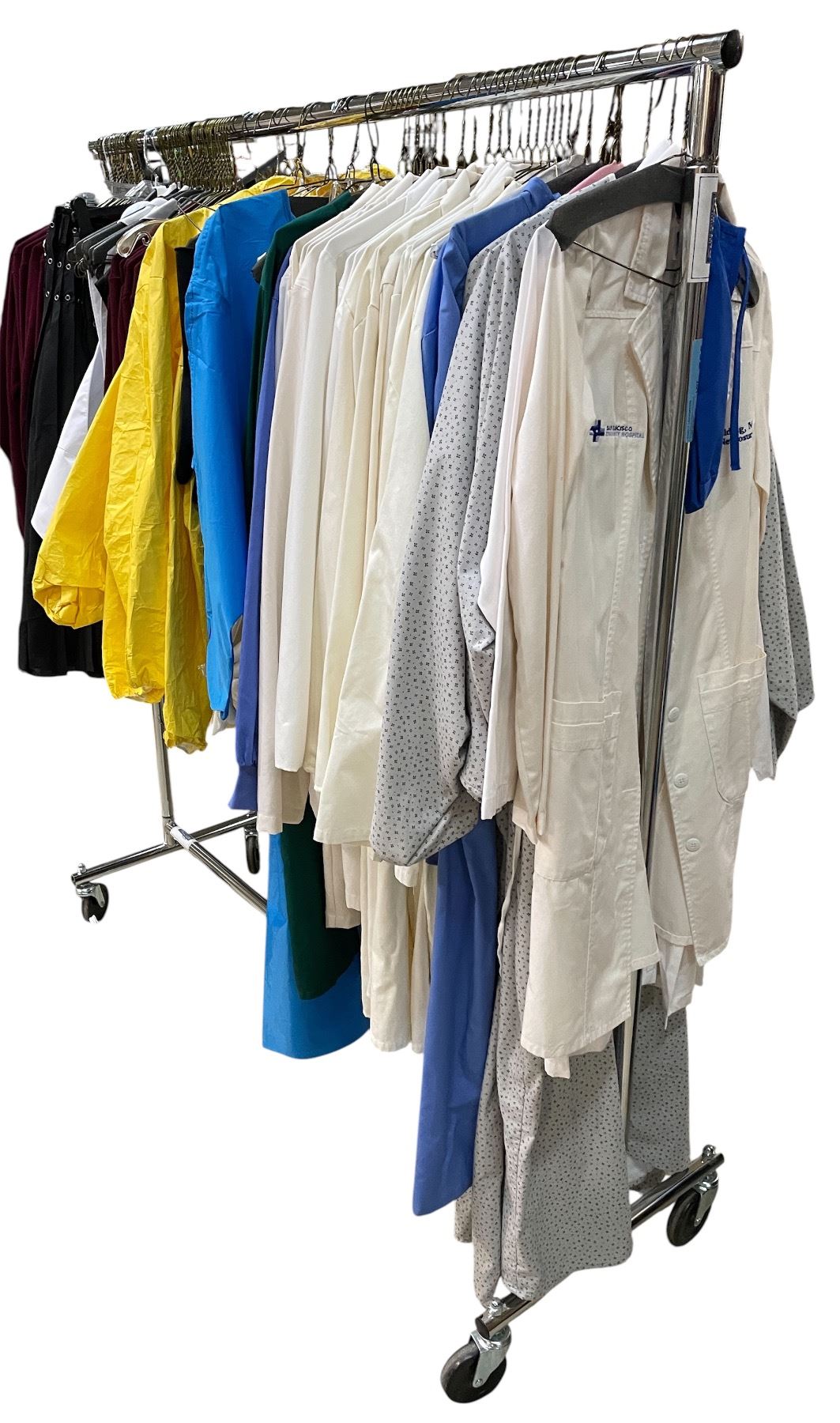 Full Rack of Misc Set Dec Clothing - Doctor Shirts, Yellow Raincoat, School Sweaters, Etc.