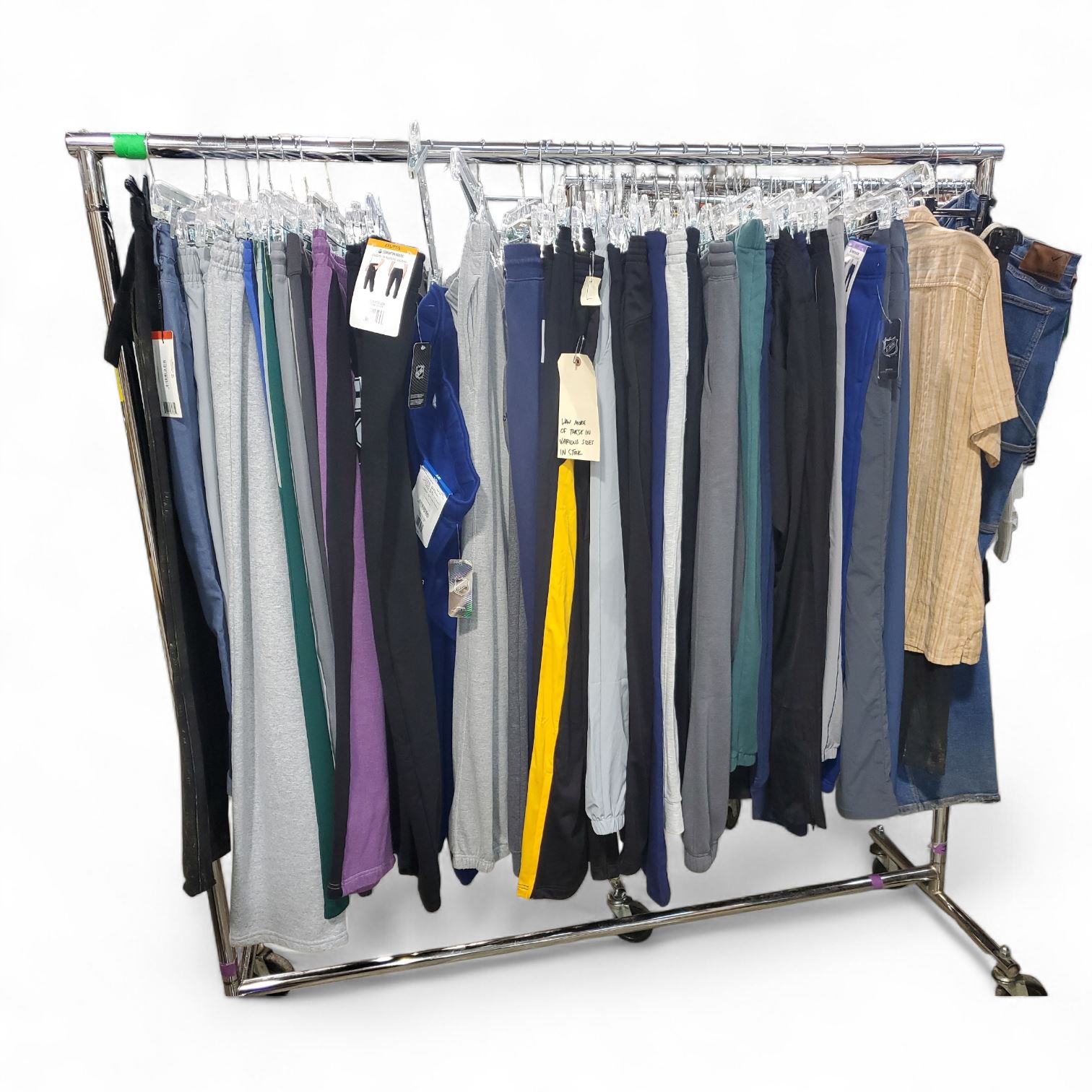 Full Rack of Pants & Sweatpants - Joggers, Track Pants & Casual Trousers, Assorted Styles & Sizes - Rack Not Included