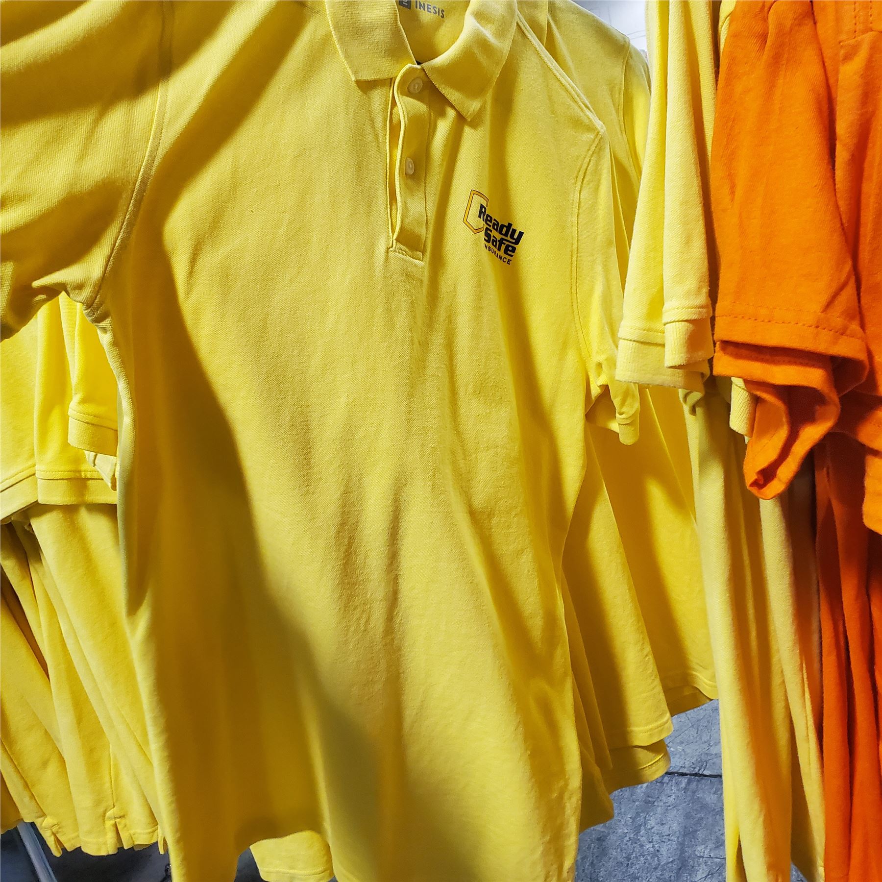 Full Rack of Yellow & Orange T-Shirts - Assorted Sizes - Rack Not Included
