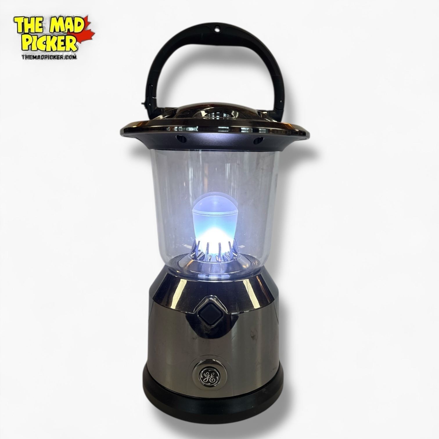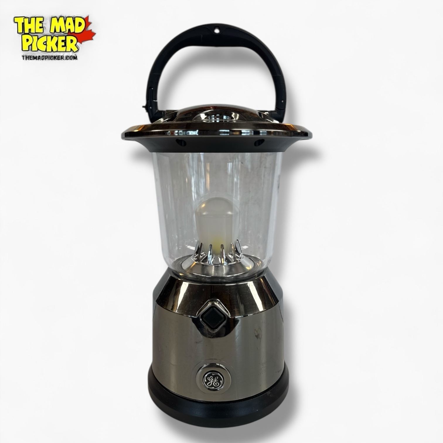 GE battery powered portable lantern. Constructed of durable modern plastic with a convenient carrying handle. Designed for versatile indoor and outdoor use. Features bright LED lighting and requires batteries (not included). Compact and lightweight design for on-the-go functionality.