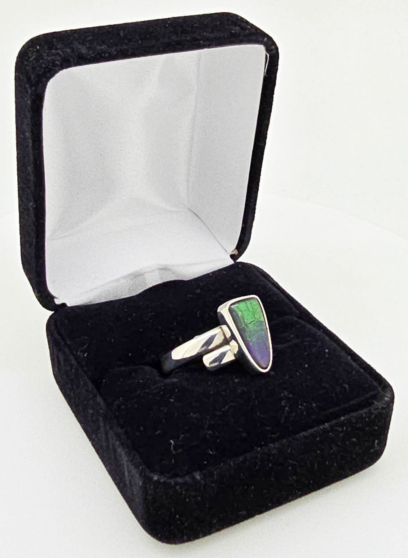 GOOD LOOKING STERLING SILVER RING WITH VALUABLE NATURAL AMMOLITE STONE – ESTIMATE $160
