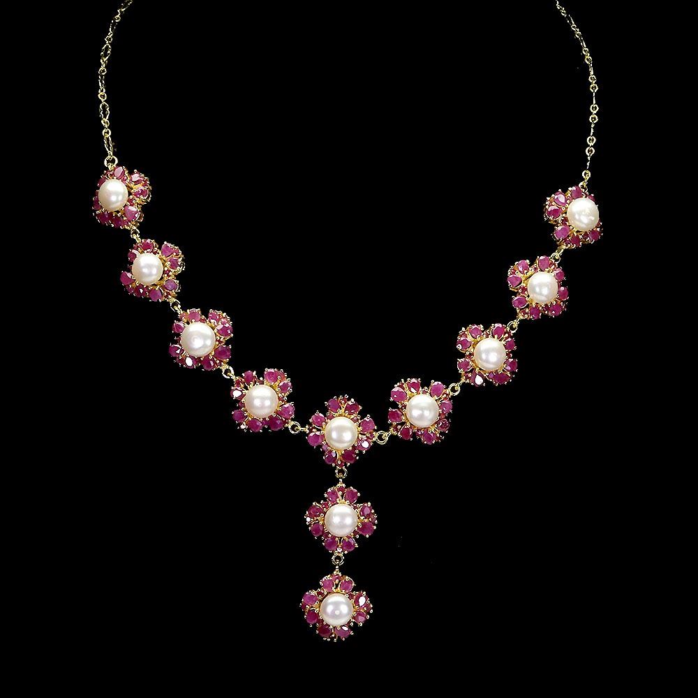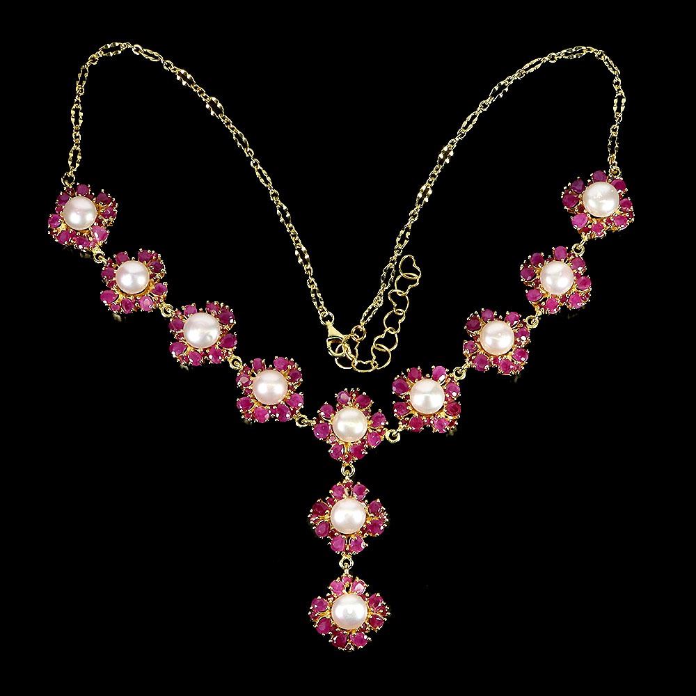 GORGEOUS PEARL AND RUBY NECKLACE IN 14K YELLOW PLATED GOLD OVER 925 STERLING SILVER - APPRAISED REPLACEMENT VALUE CAD 2,450