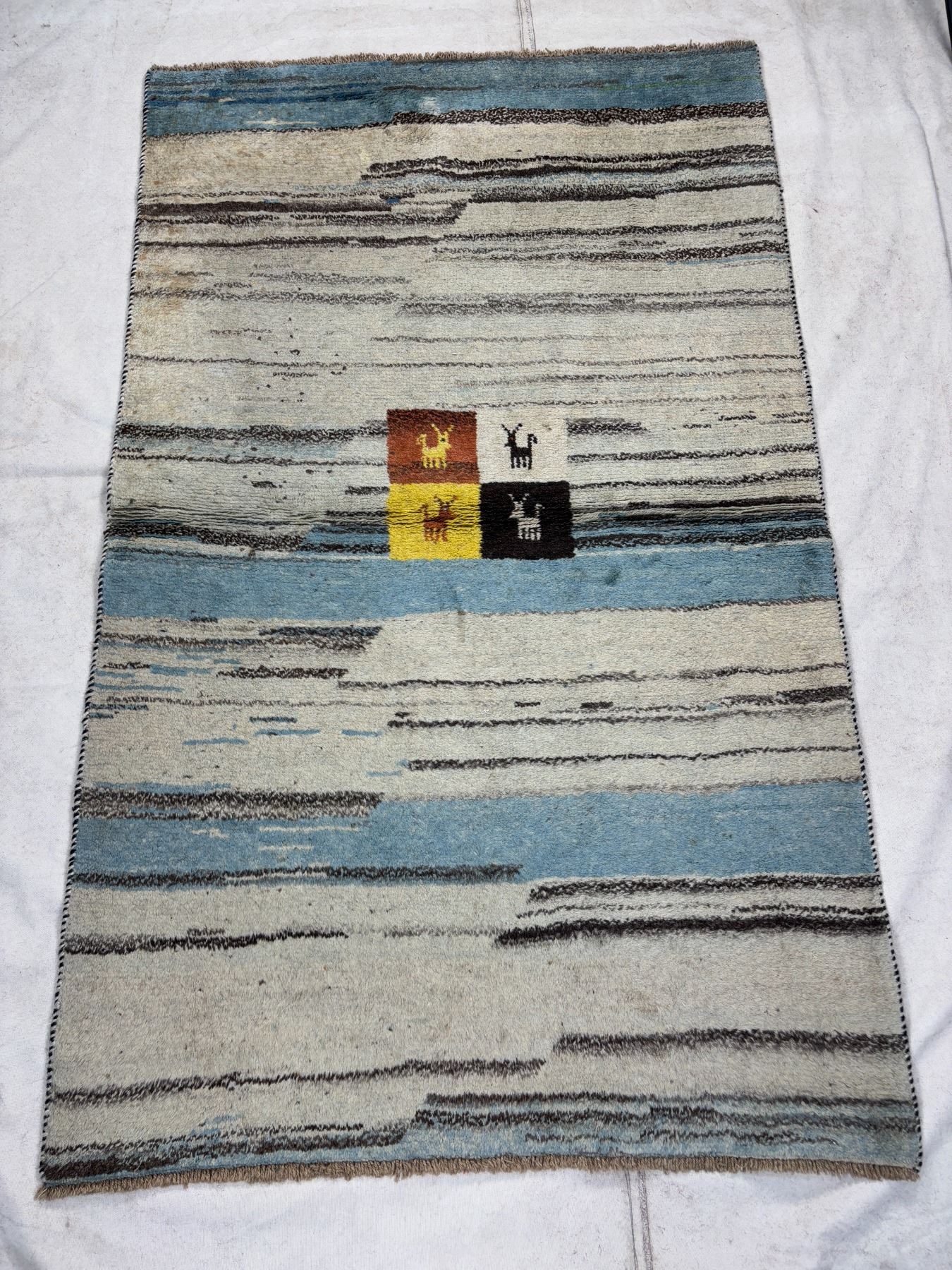 Gabbeh - 100% Authentic Hand Knotted Wool Persian Rug - Handmade in Iran - 6.2" x 3.10" ft - No: 102