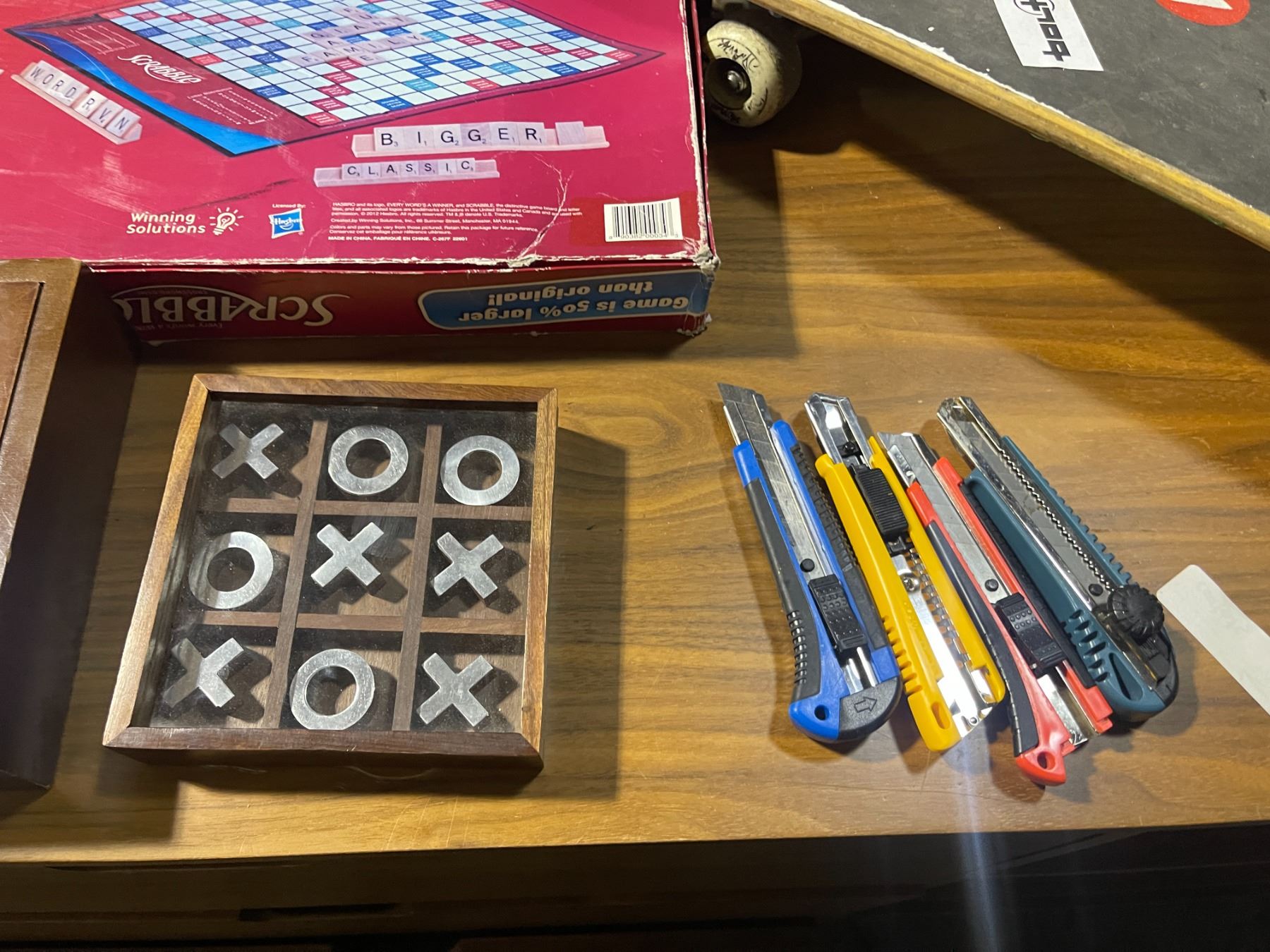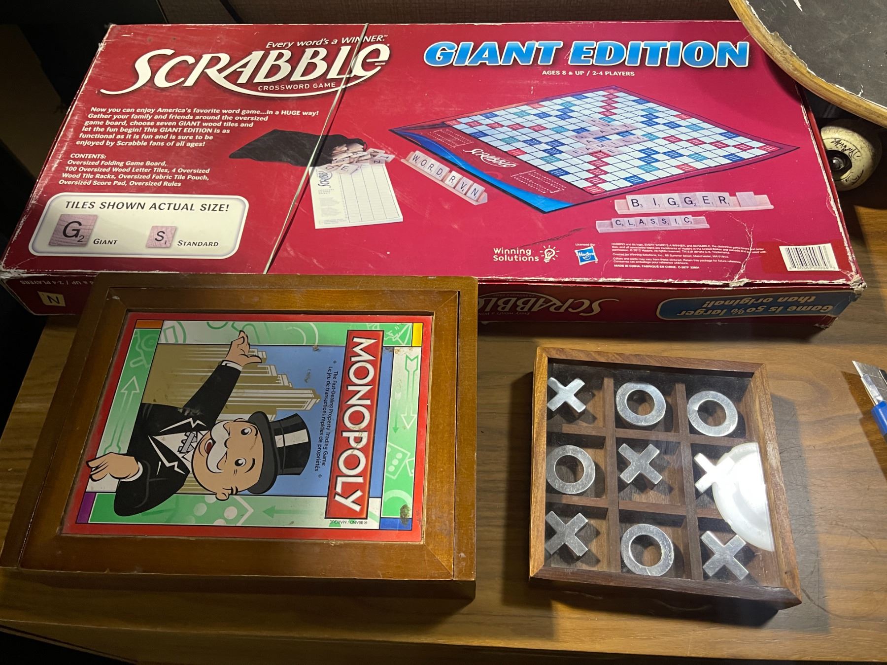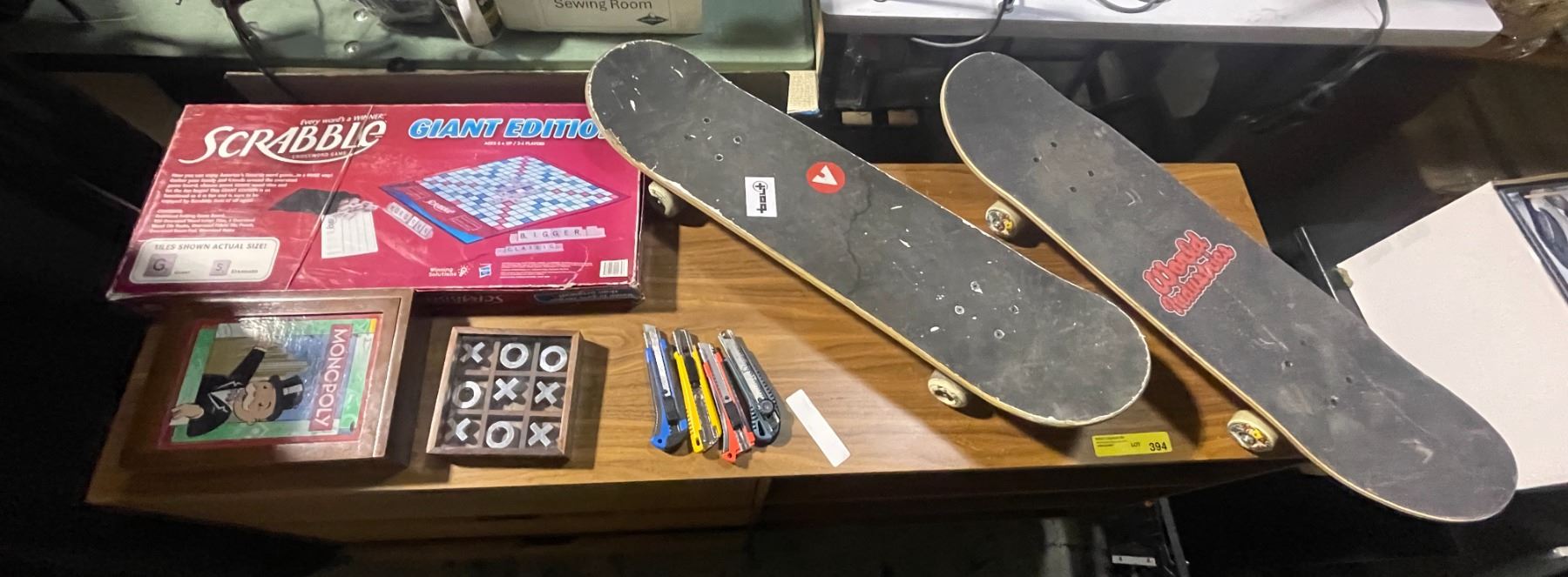 Game and Skateboards Lot: Scrabble, Monopoly, Tic-Tac-Toe