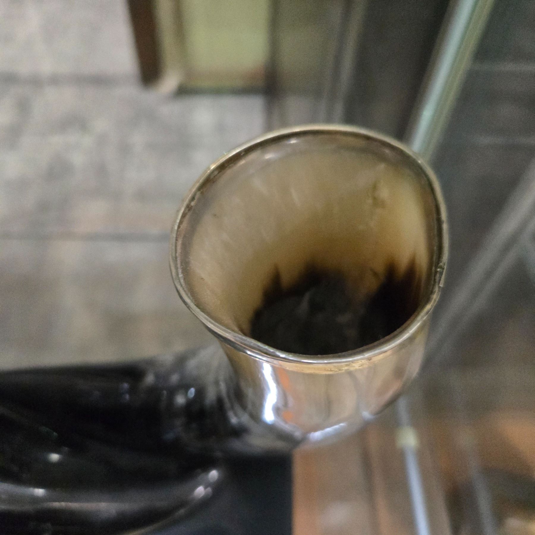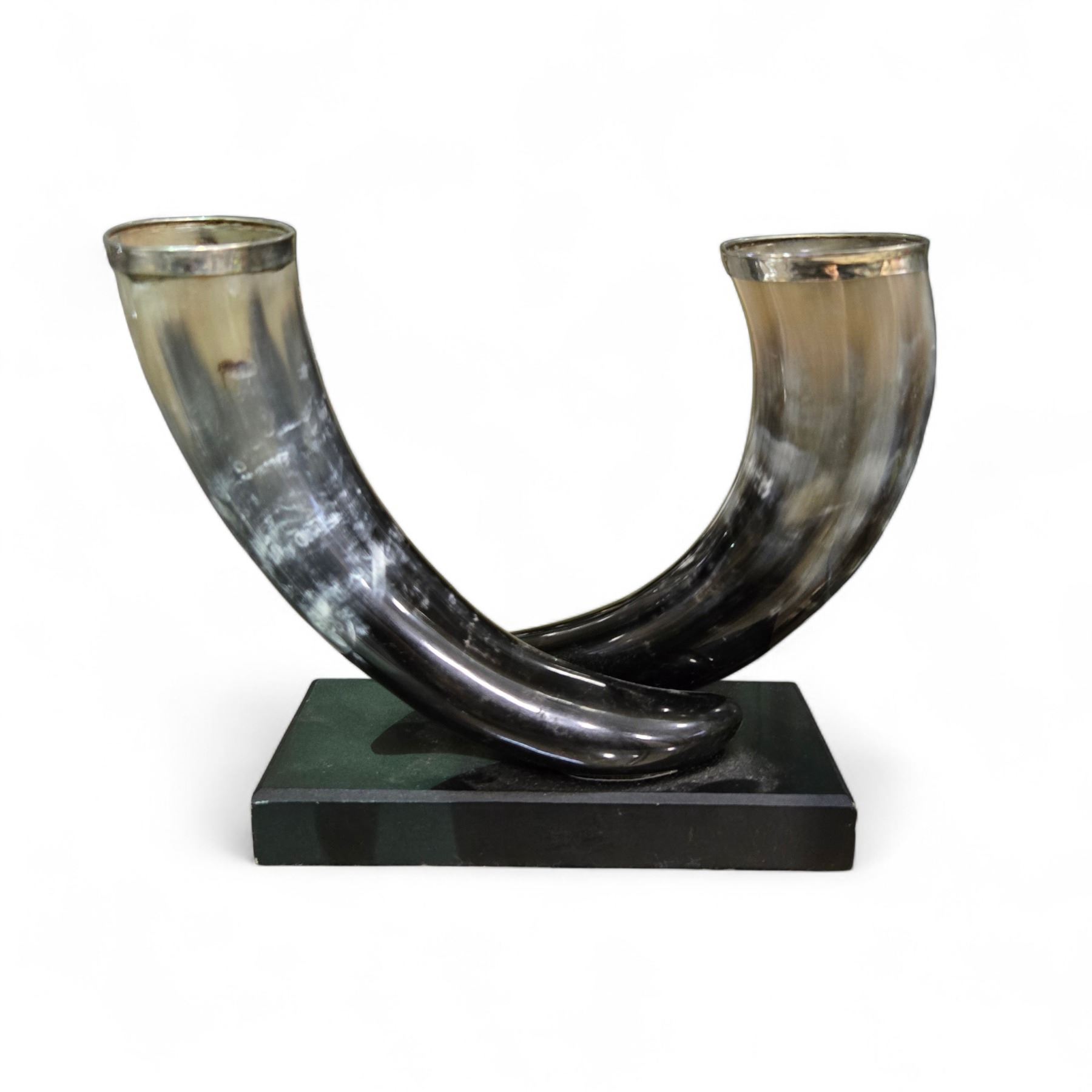 Genuine Double Horn Vase with Silver Plated Rims - 3" x 7" x 7.5" tall