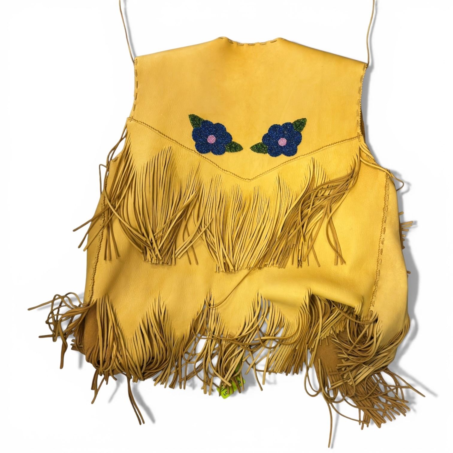 Genuine Leather Vest with Beaded Appliques (22" wide at the back and 28" long at the end of the fringe) * Very gently worn