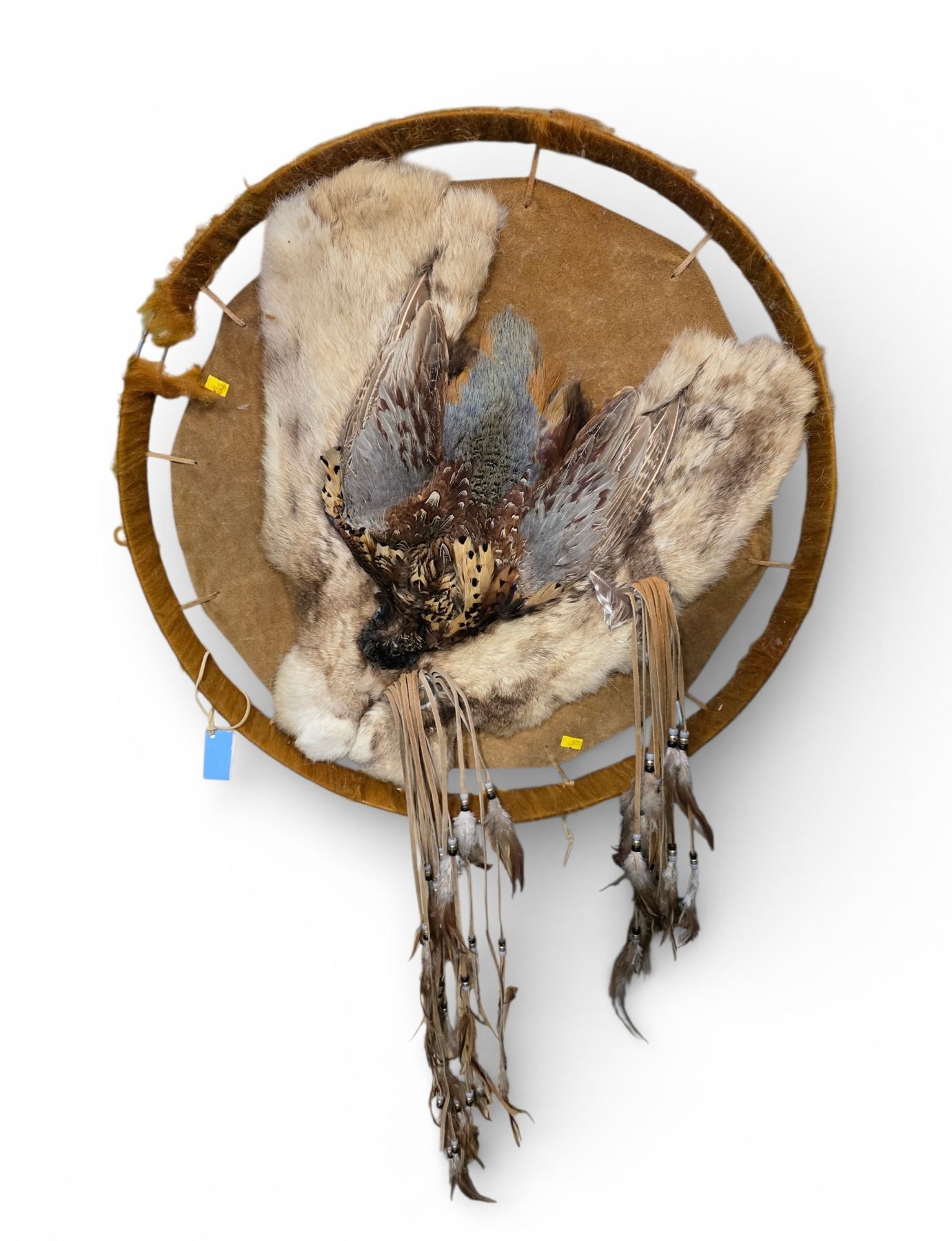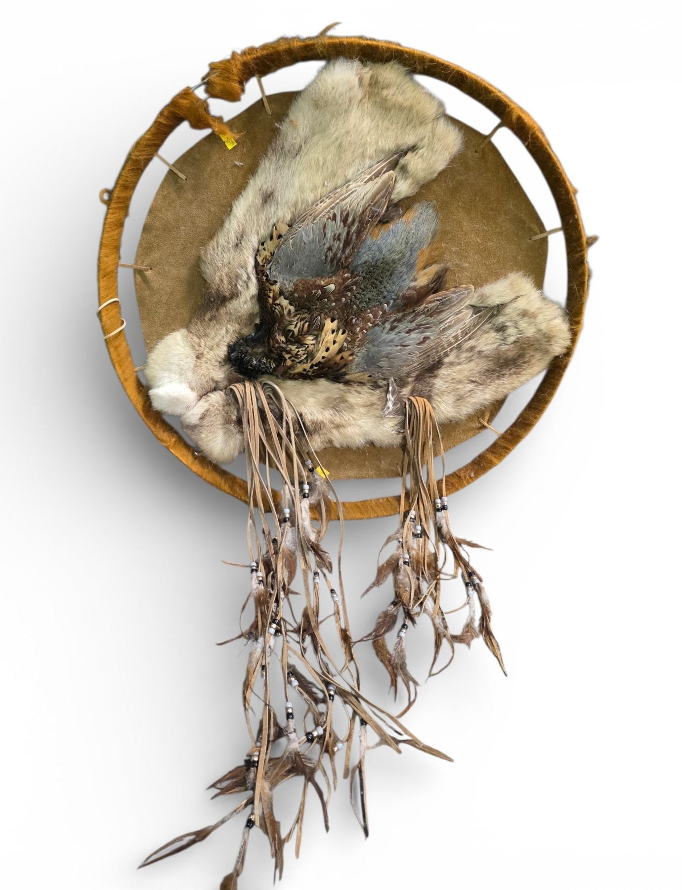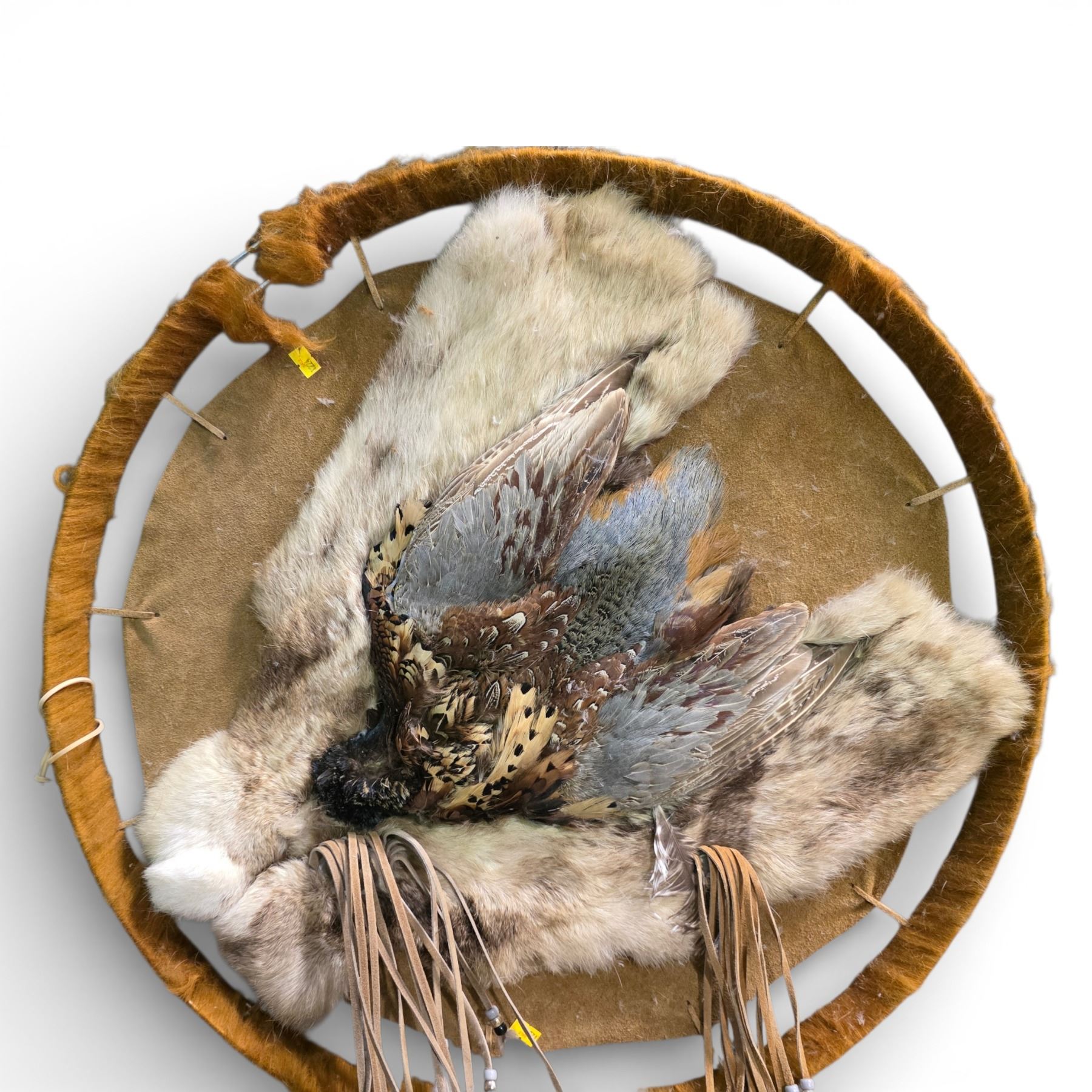 Genuine Pheasant, Fur & Leather Wall Hanging (26" diameter)