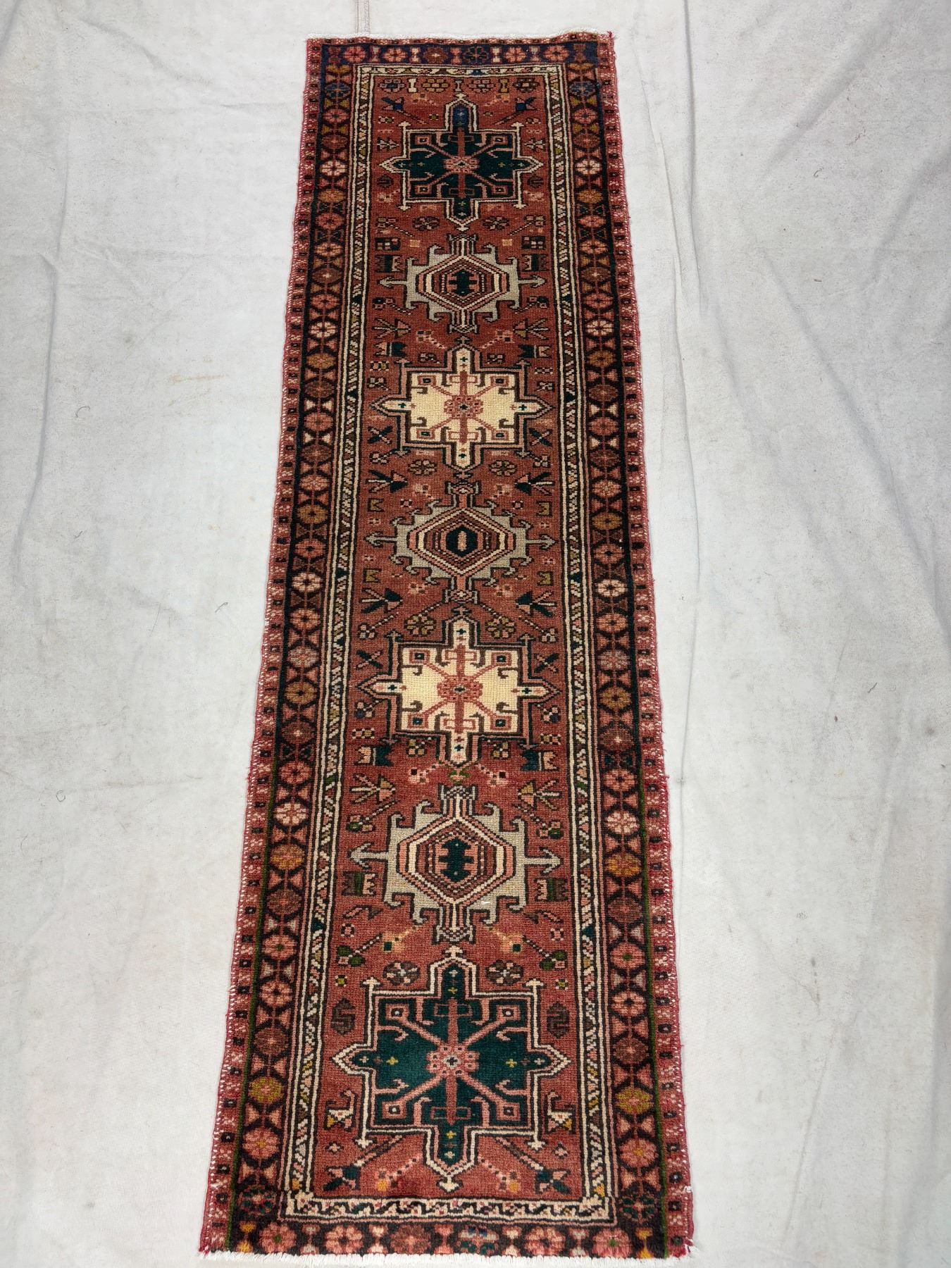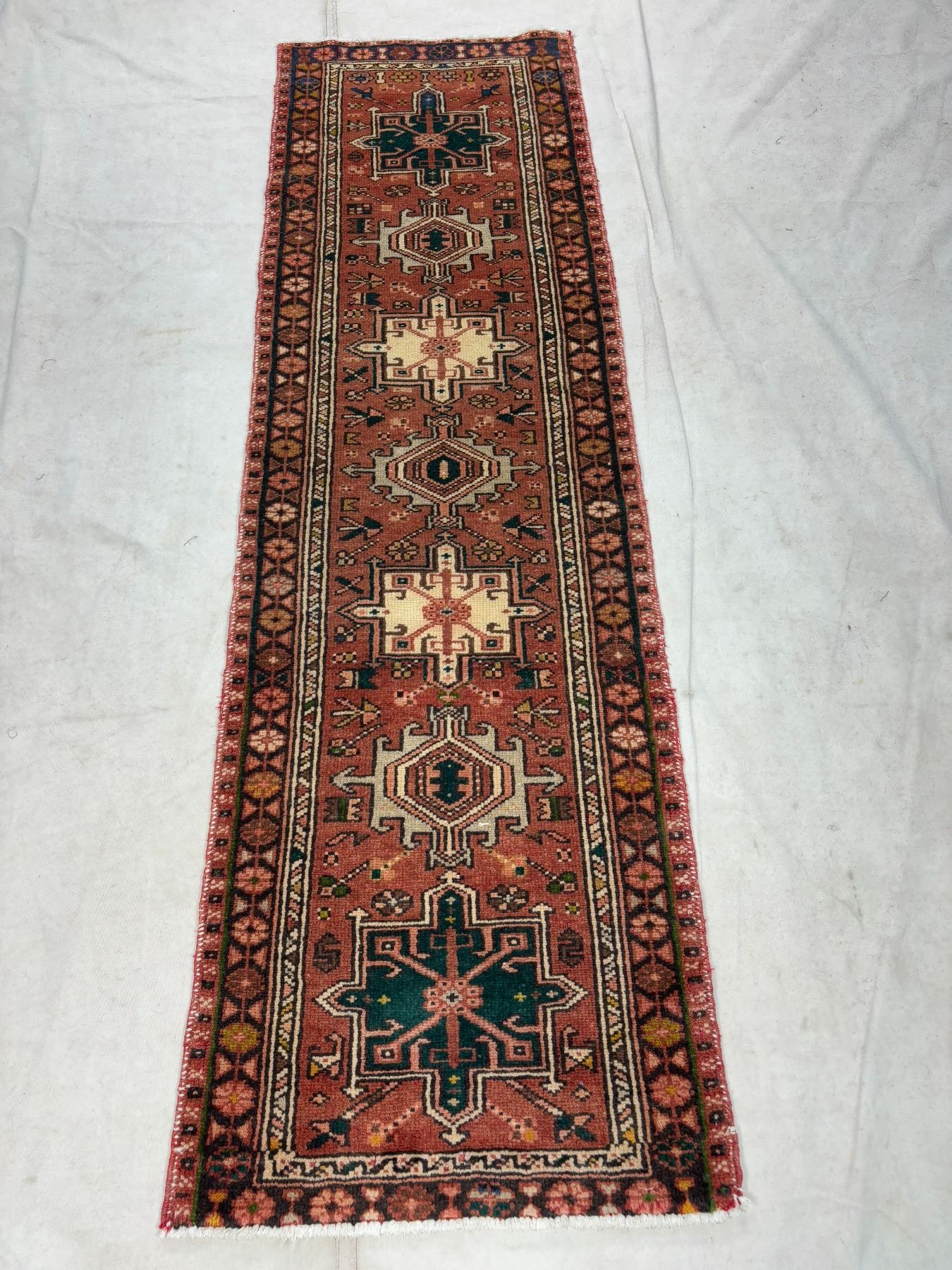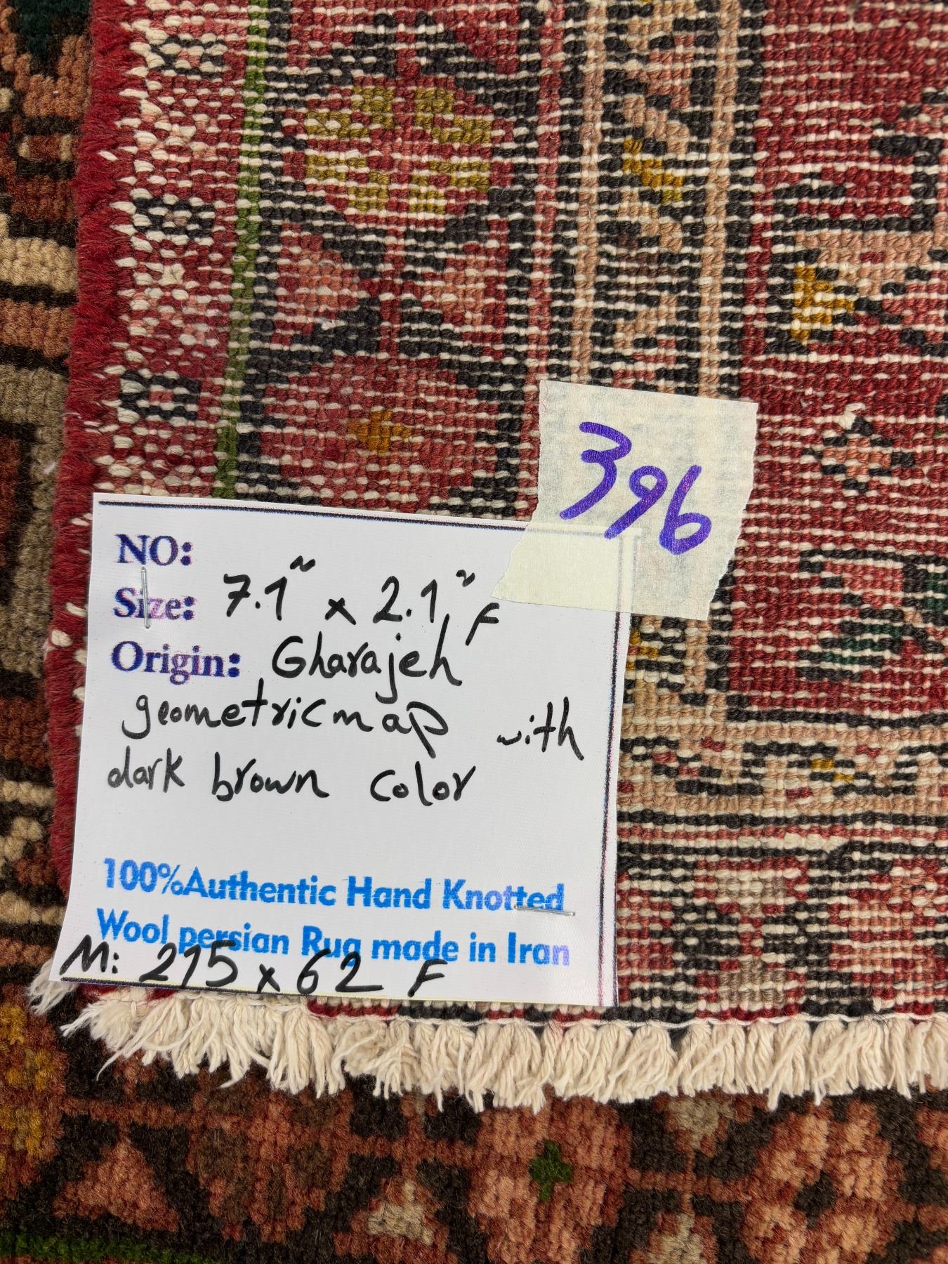Gharajeh geometric map with dark brown color 100% Authentic Hand Knotted Wool Persian Rug (Size - 7.1 ×2.1' - 215×62 cm)