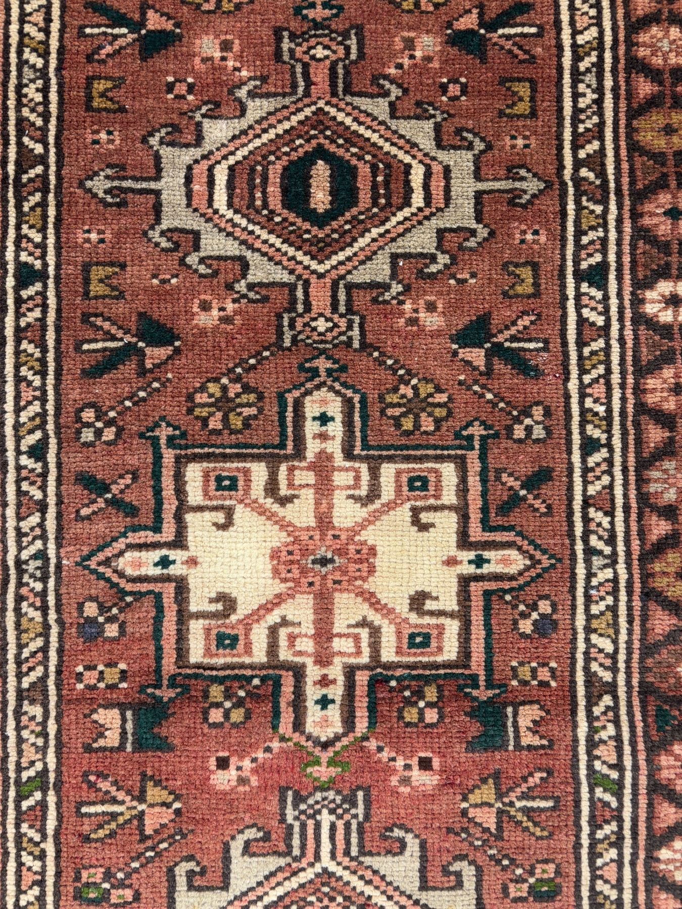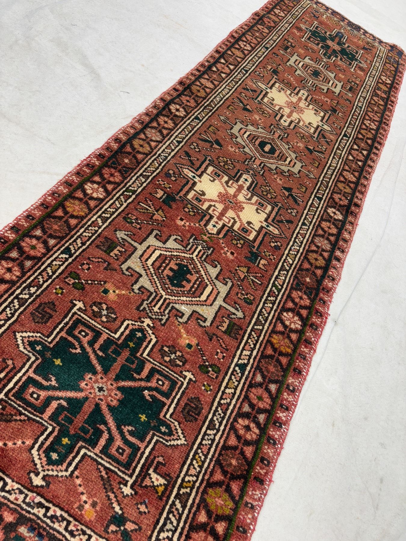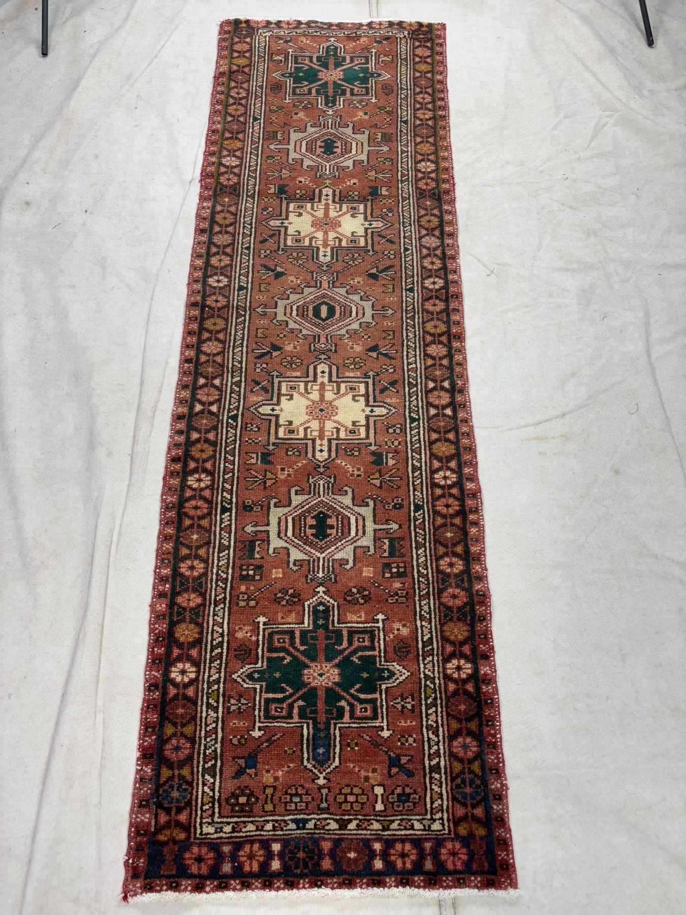 Gharajeh geometric map with dark brown color 100% Authentic Hand Knotted Wool Persian Rug (Size - 7.1 ×2.1' - 215×62 cm)