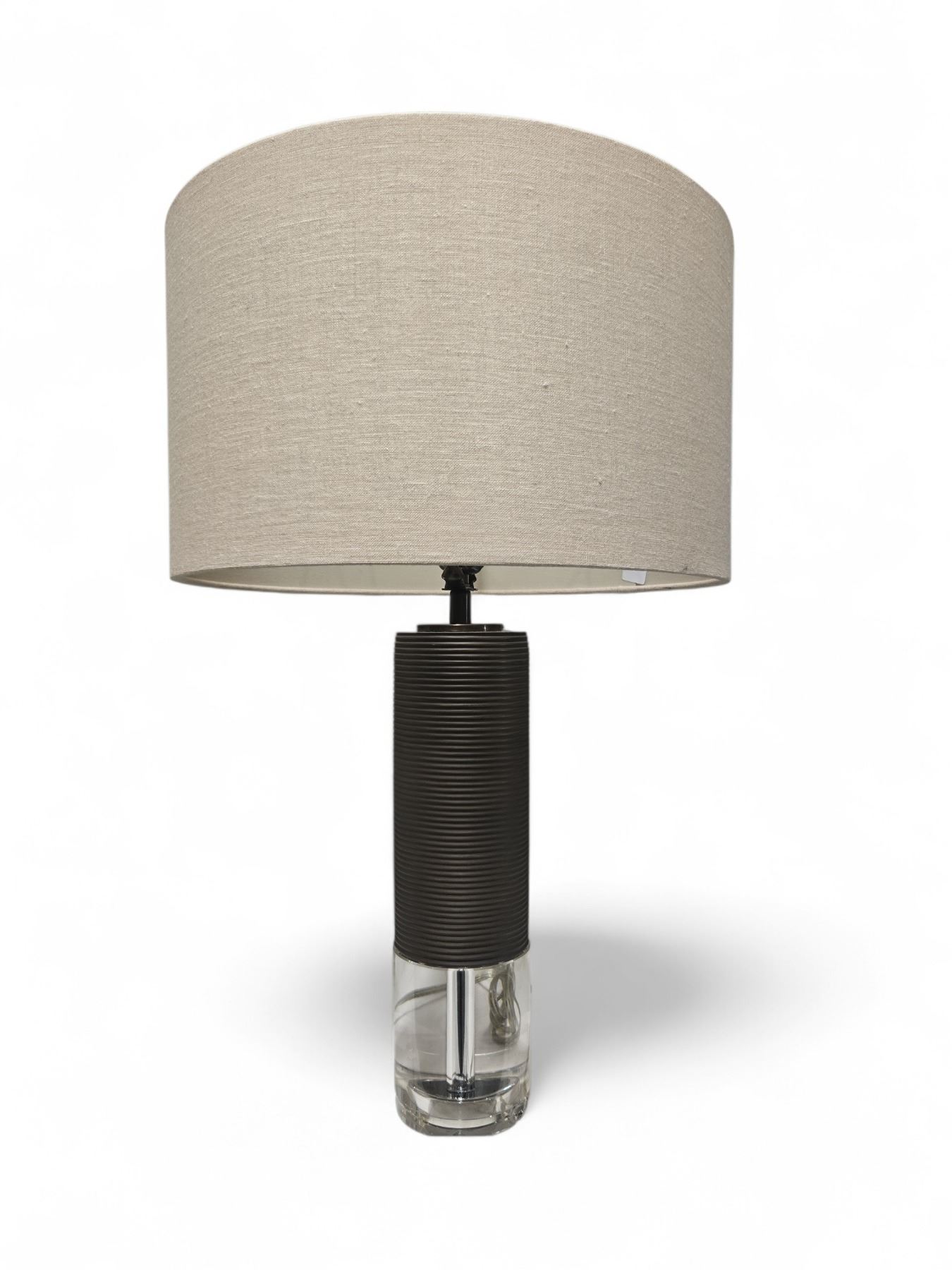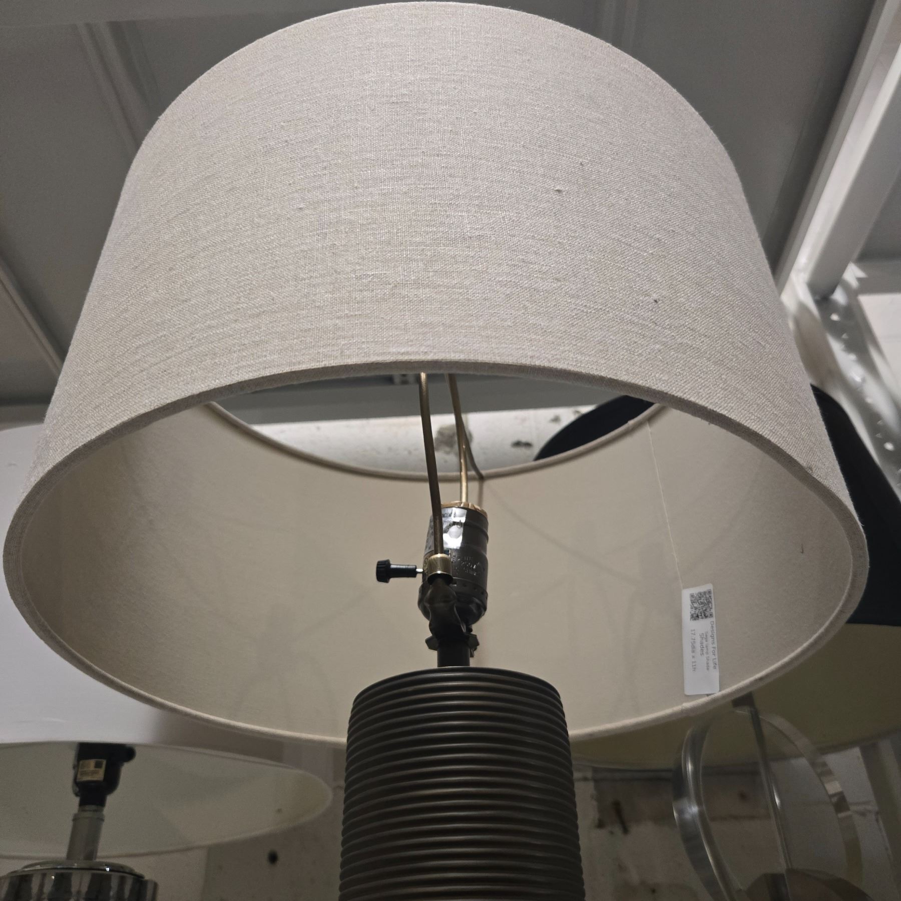 Glass & Brown Lamp w/ Creram/Beige Color Shade - 25"H