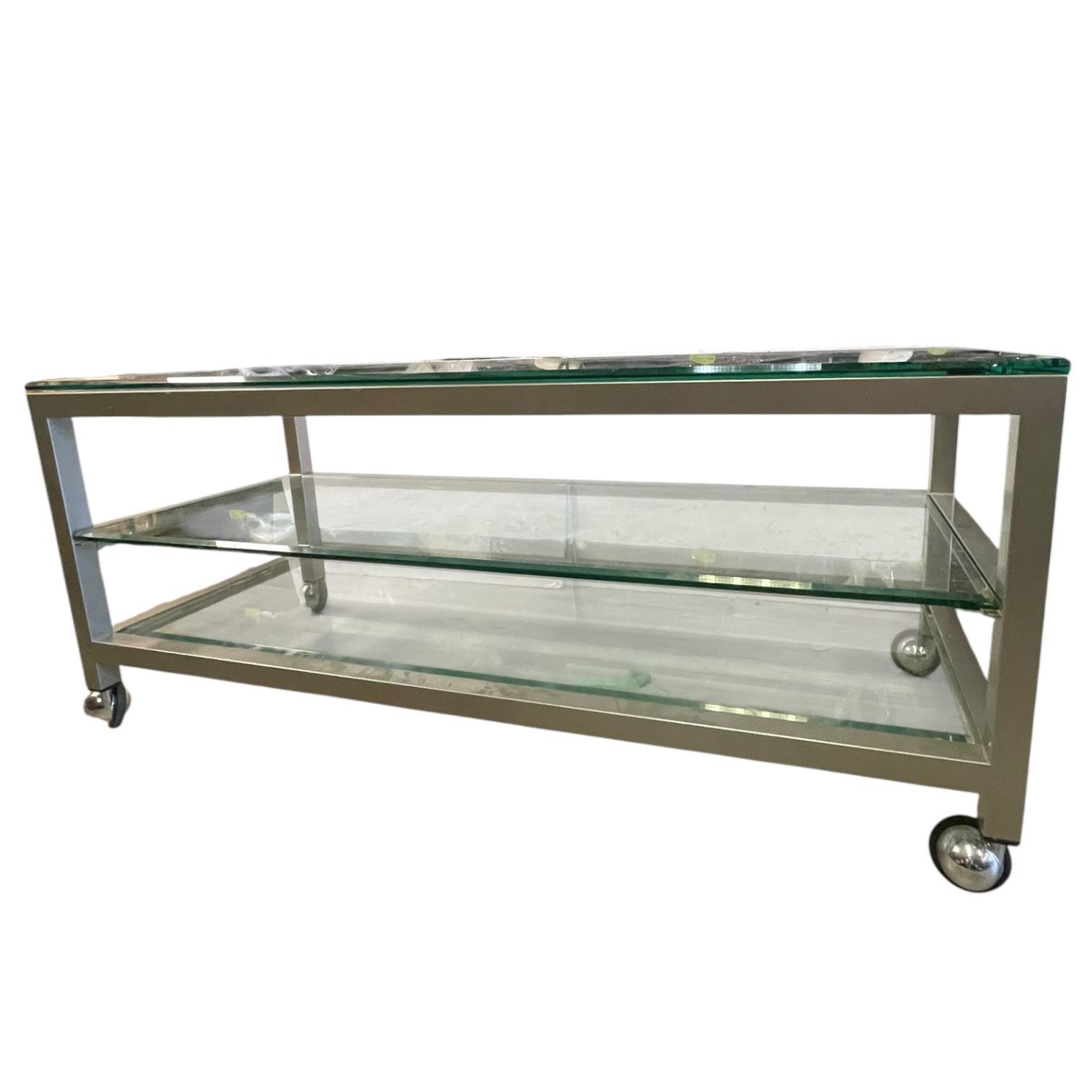 Glass Coffee Table on Casters with Metal Frame * 3-Tiers (18" x 46" x 20" tall)