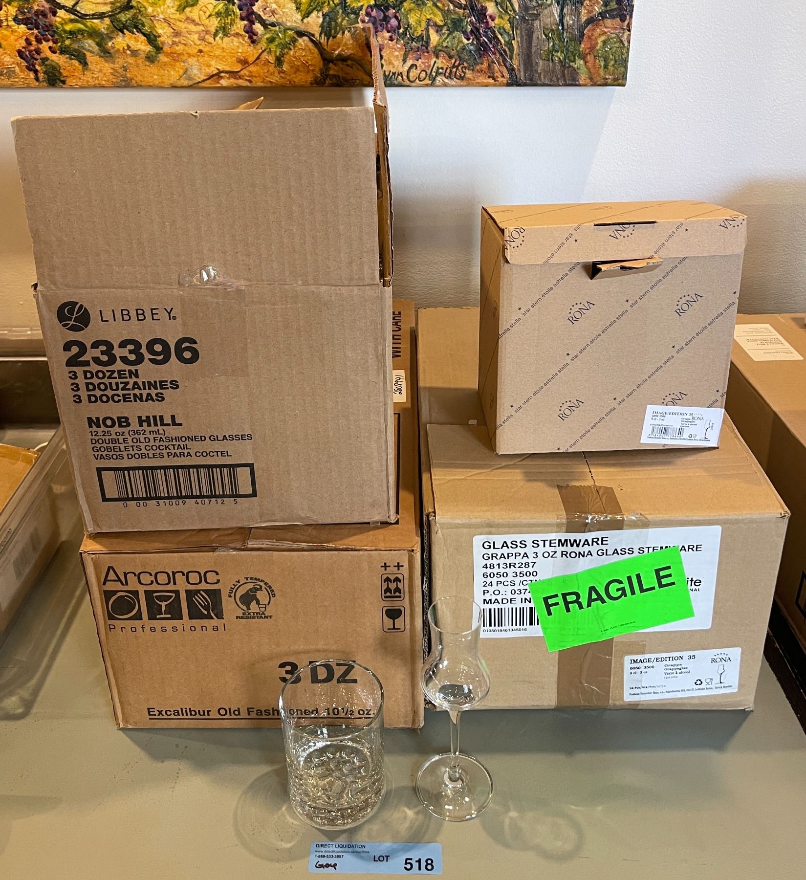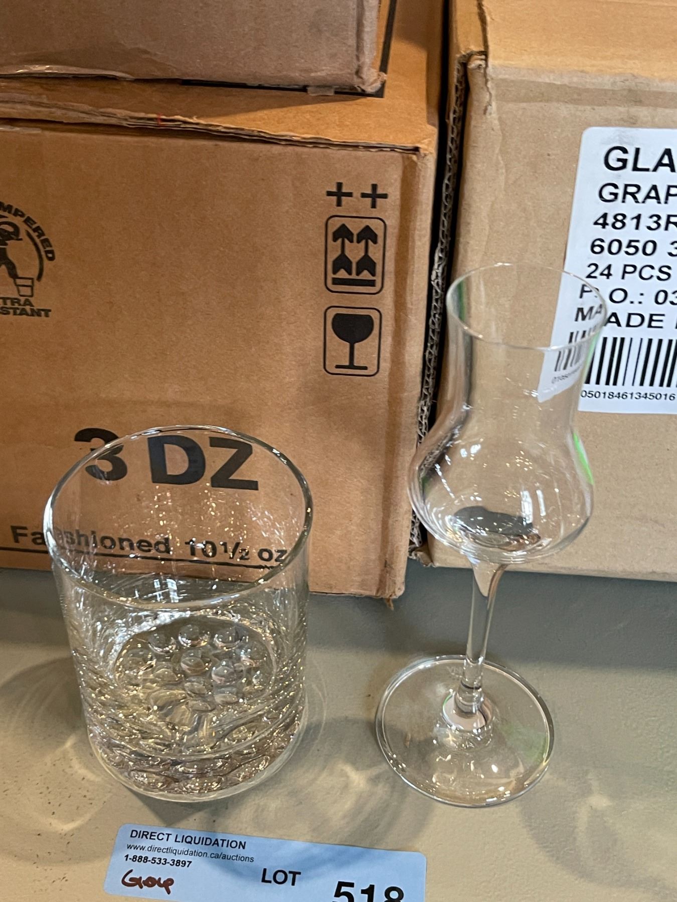 Glass Grappa flutes (Approx. 24) & short glass rocks glasses (Approx. 4.5 Dozen)