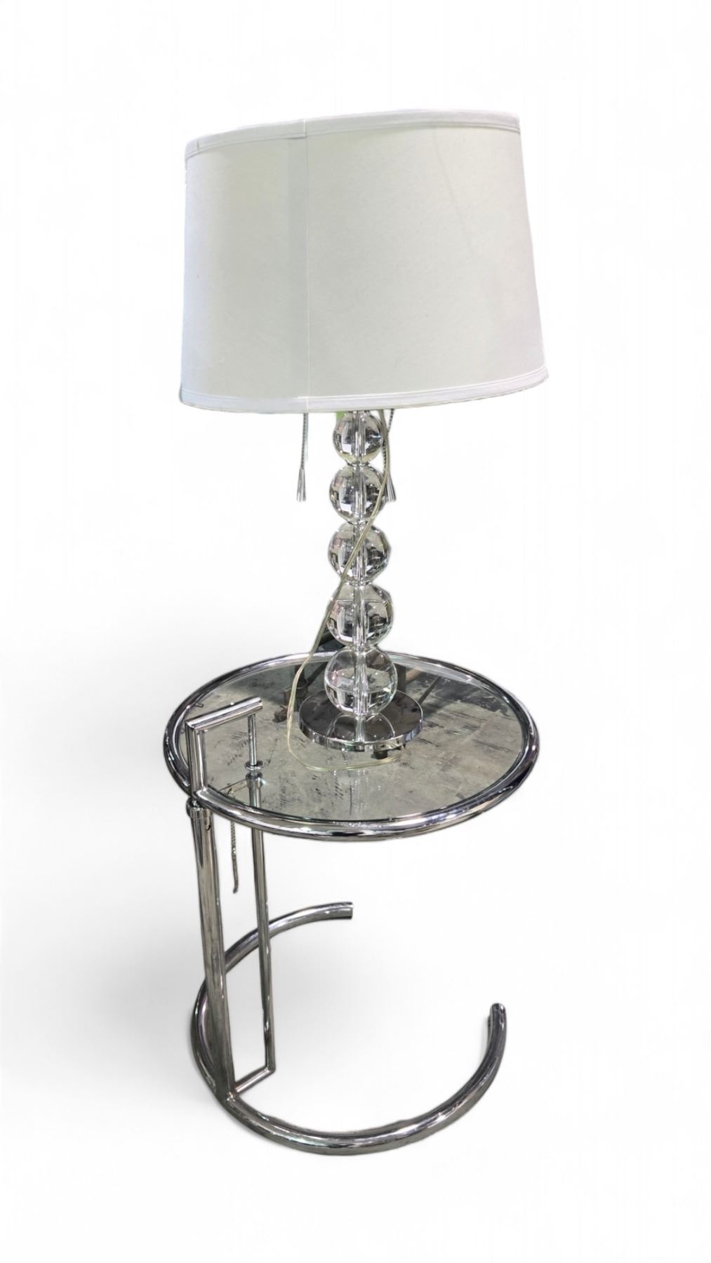 Glass Top Adjustable Height Side Table (19x25) w/Cleared Bubble Table Lamp (30x13)