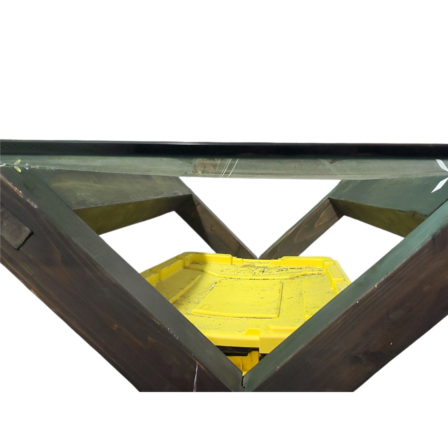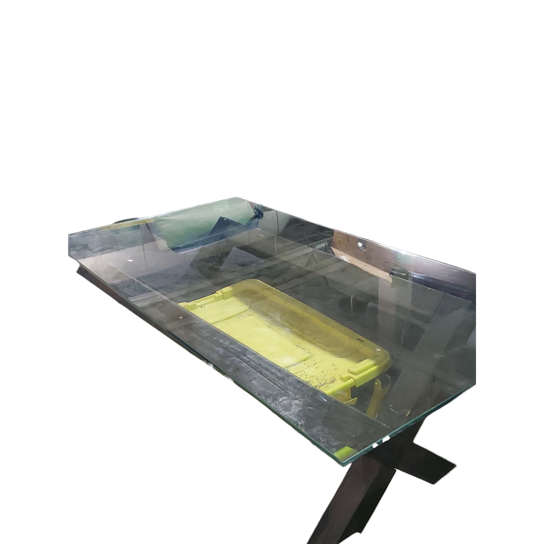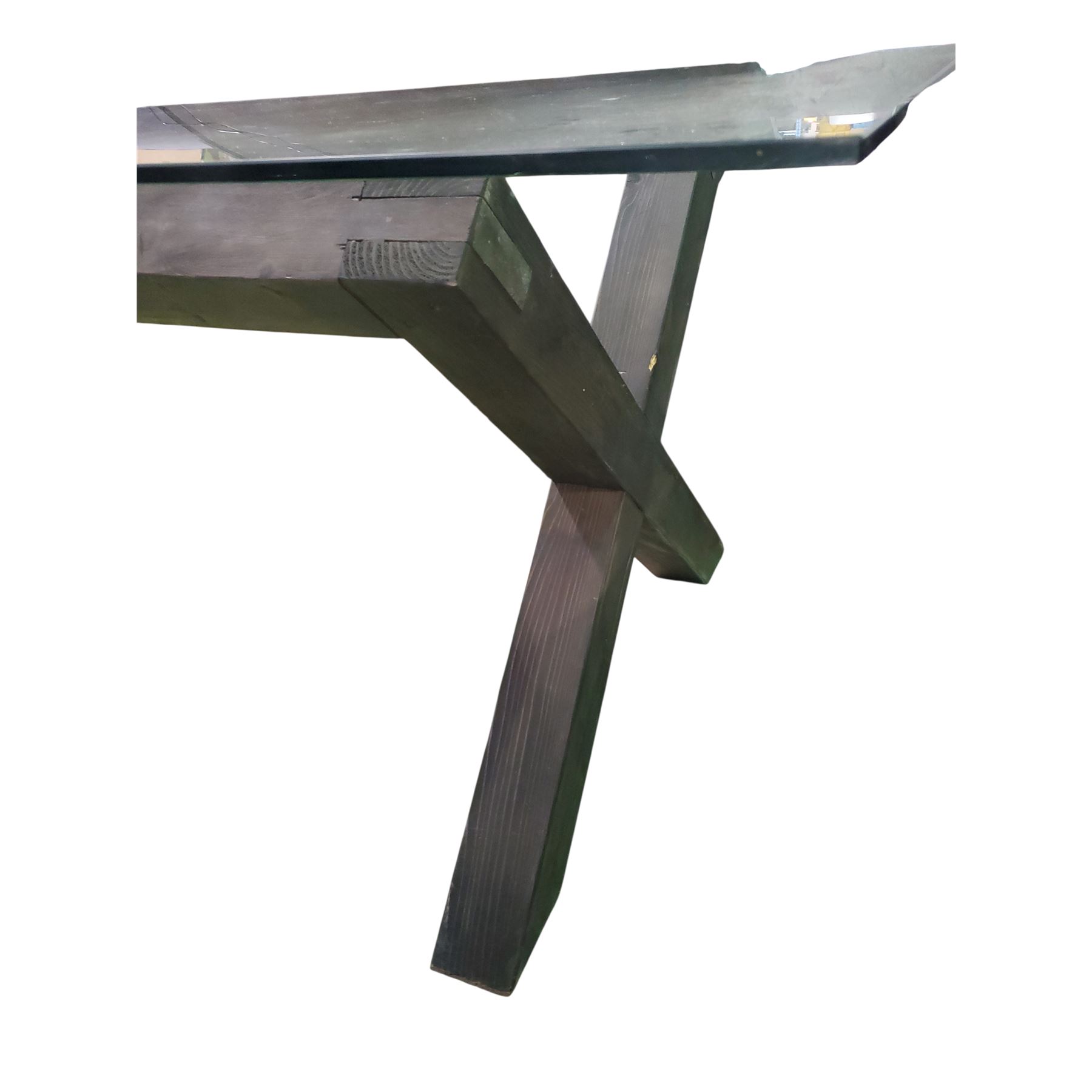 Glass-Top Dining Table with Dark Wood Base, Approx. H28" x W71" x 35.5"