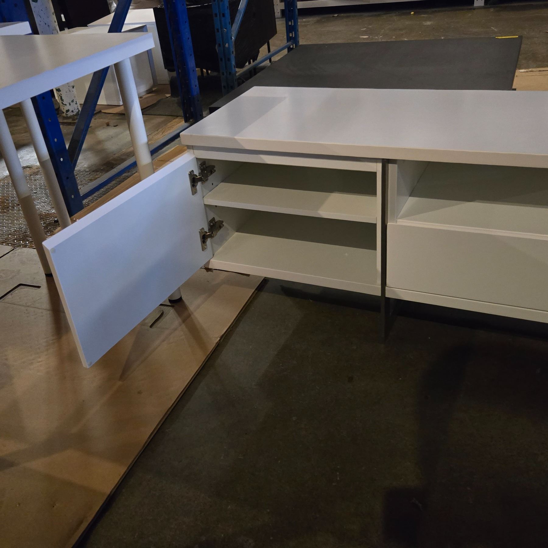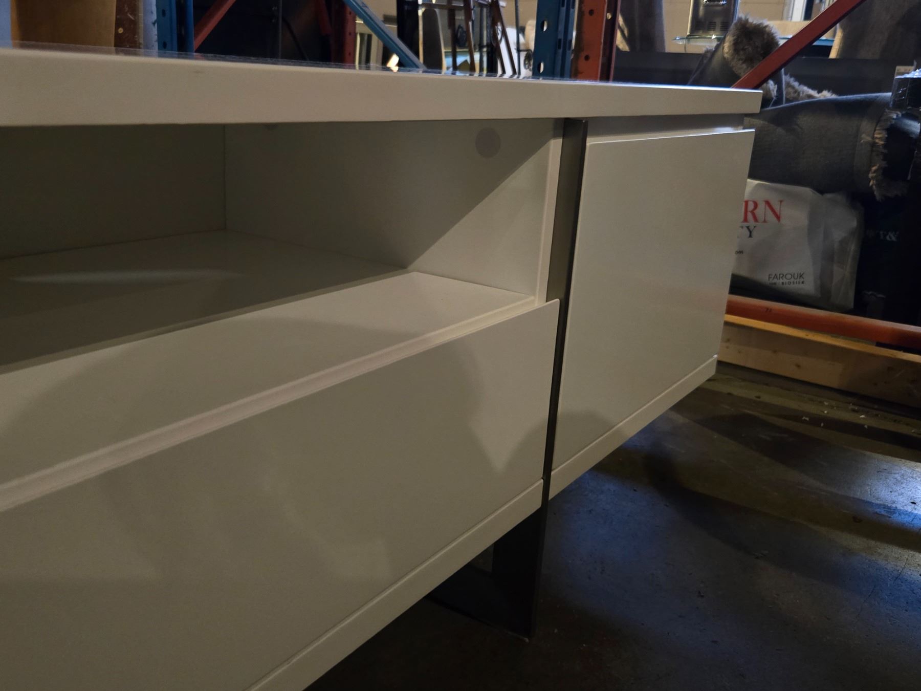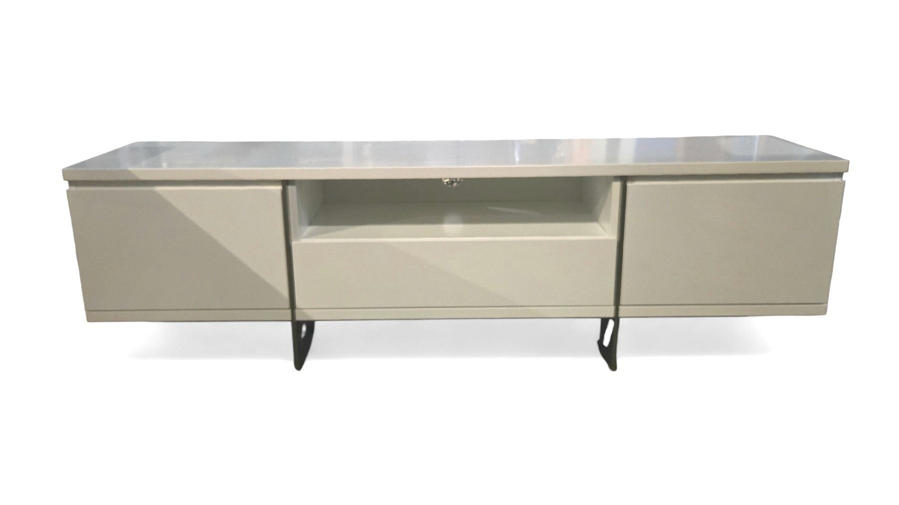 Gloss White 3 Drawer TV Stand w/ Modern Metal Legs - 71x16.5x21"