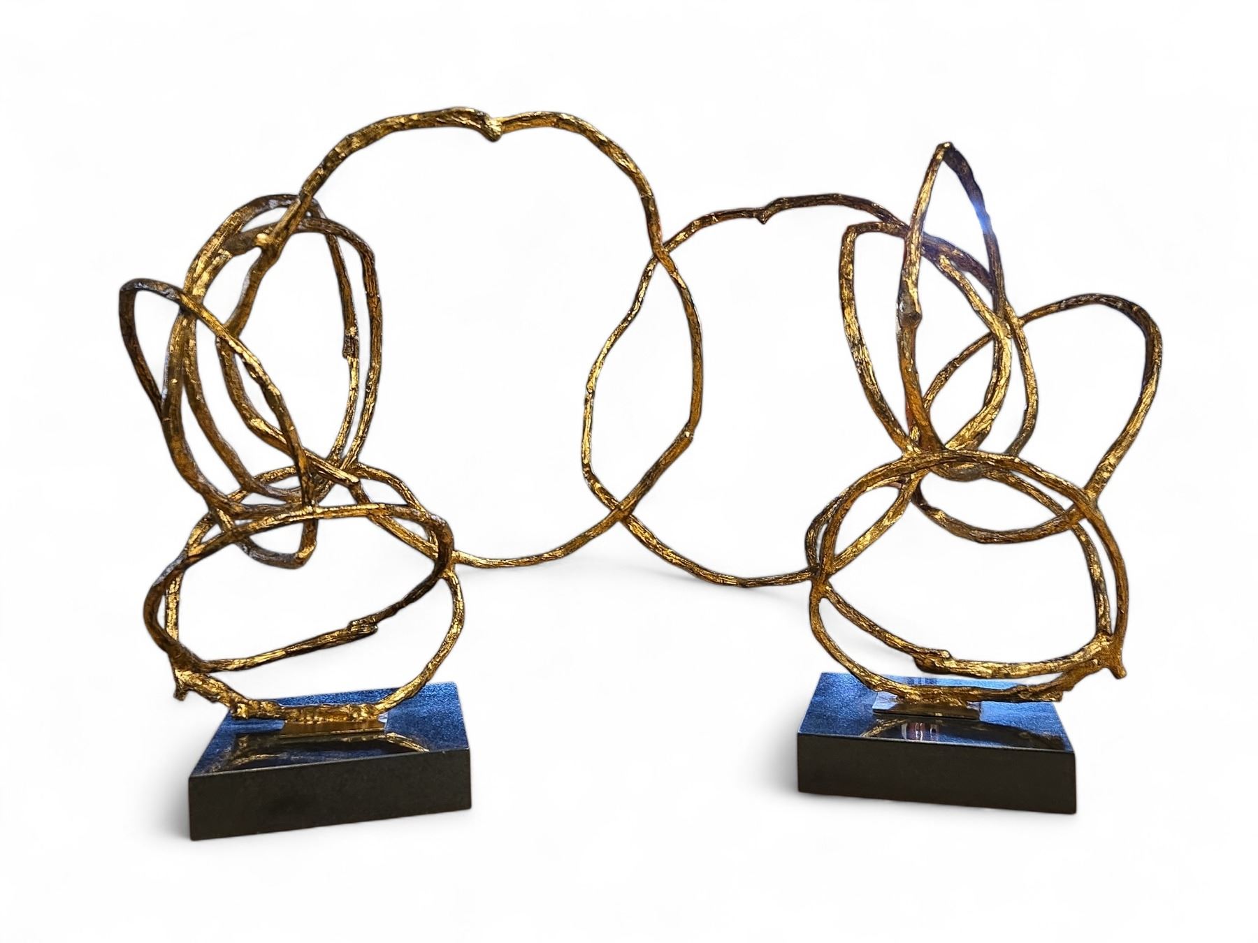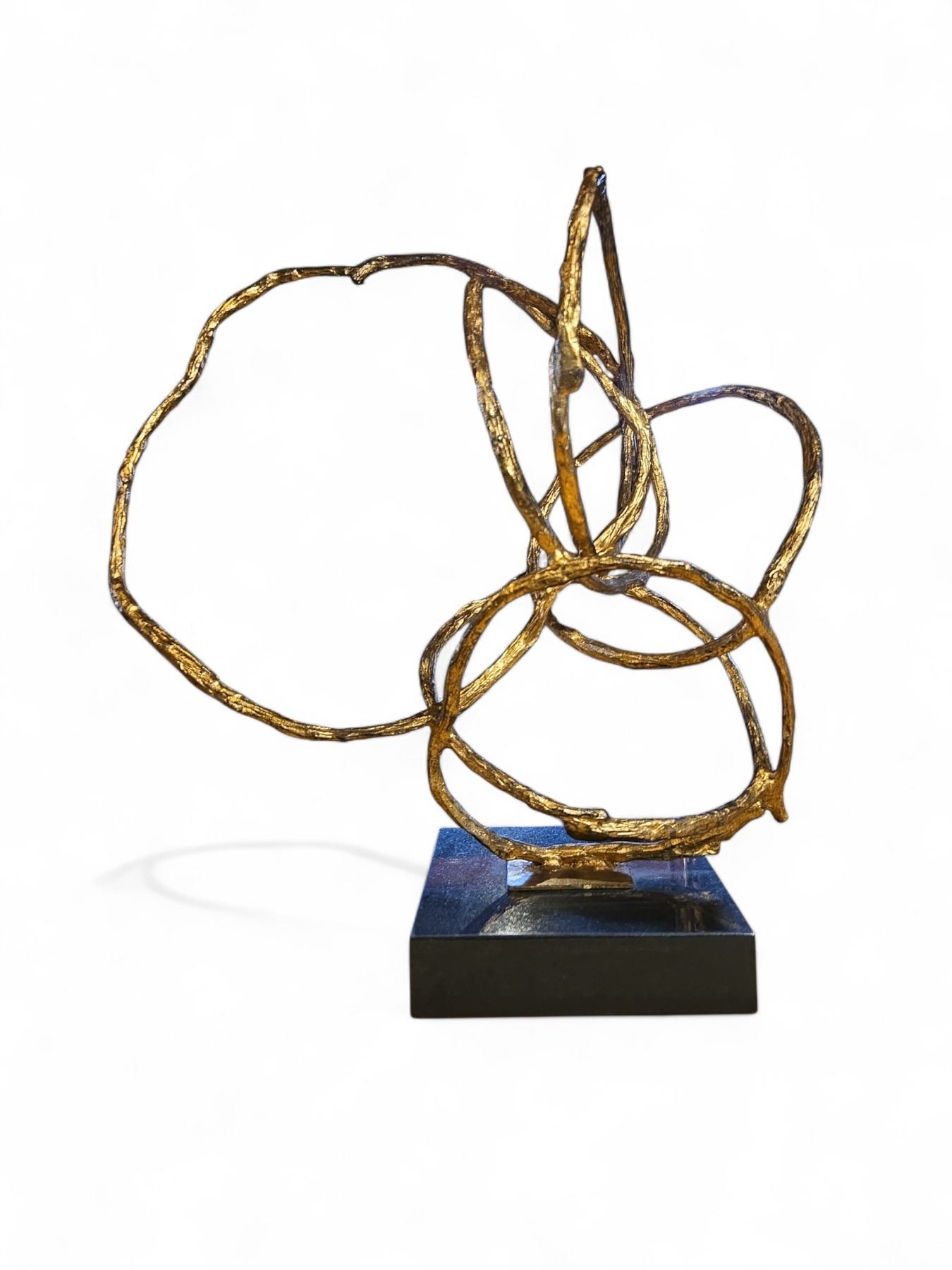 Gold Abstract Décor w/ Black Marble Base - 20"H