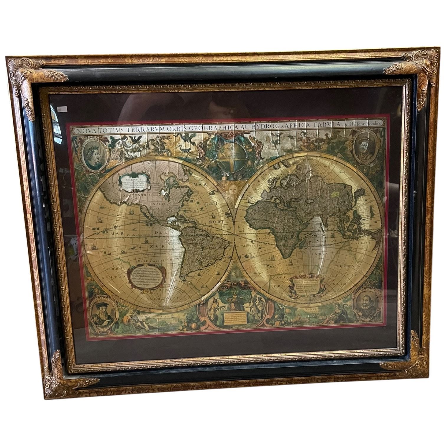 Gold Foil World Map in Ornate Frame (Frame dimensions 36" x 30")