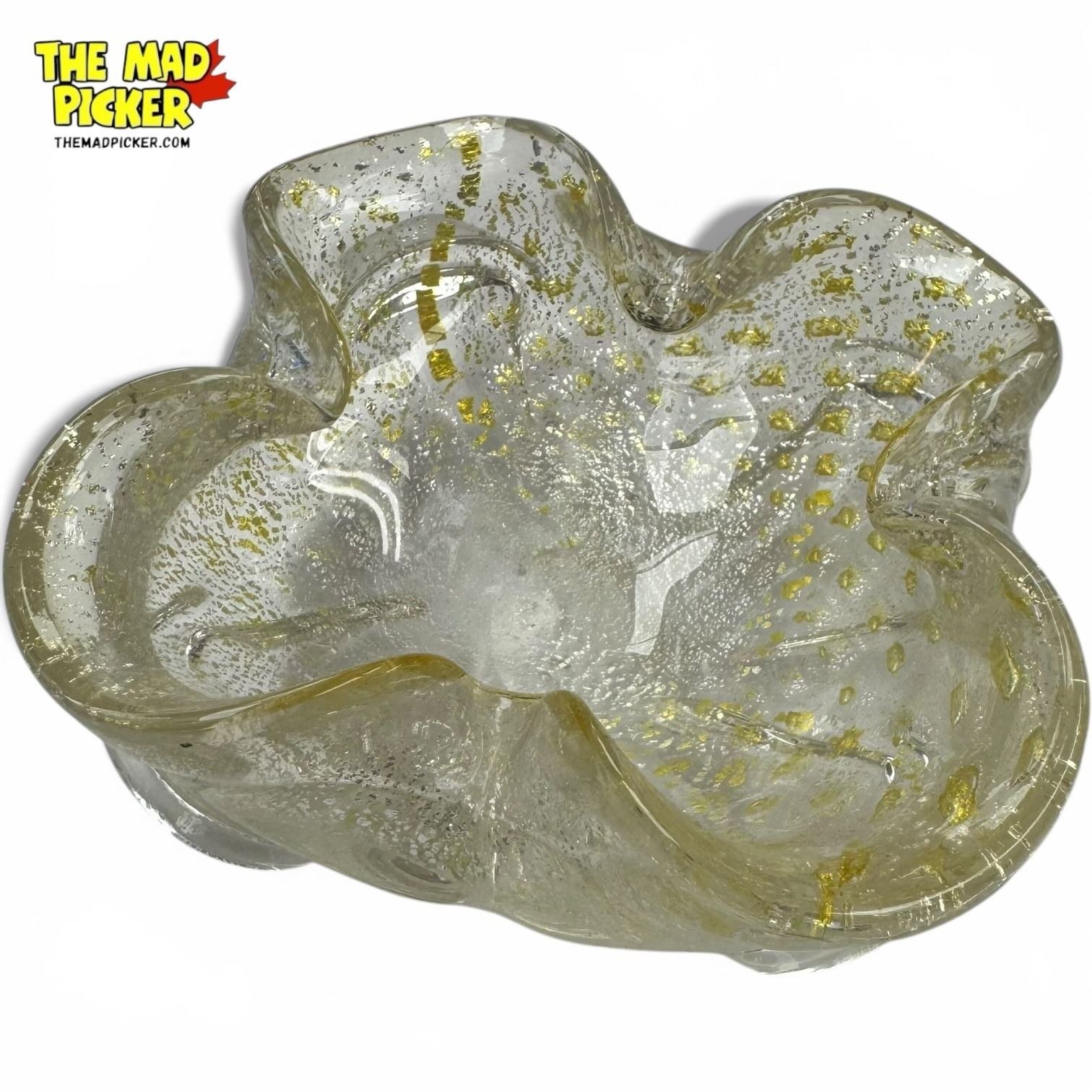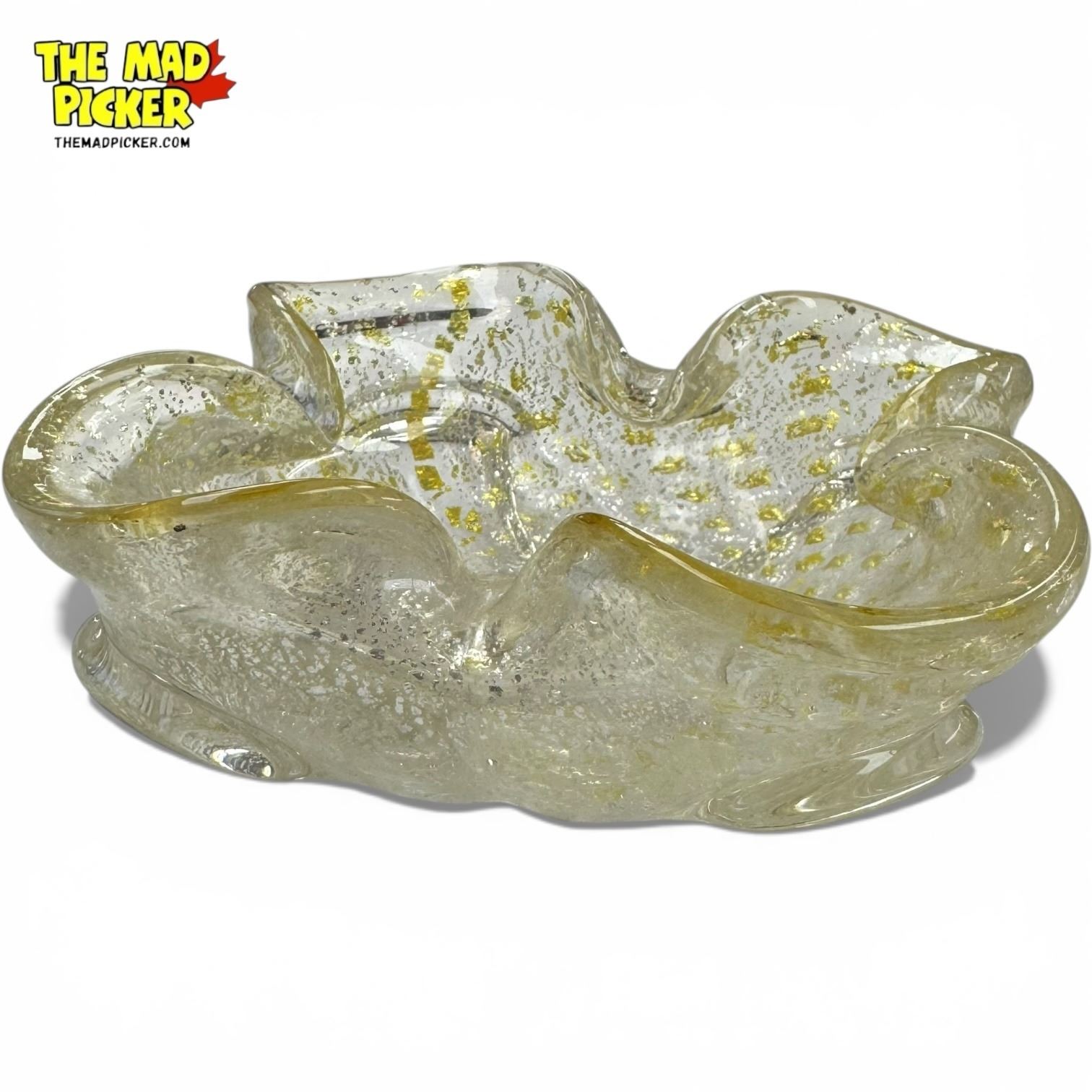 Gold Leaf Murano Glass Ashtray - 2" deep x 6" diameter