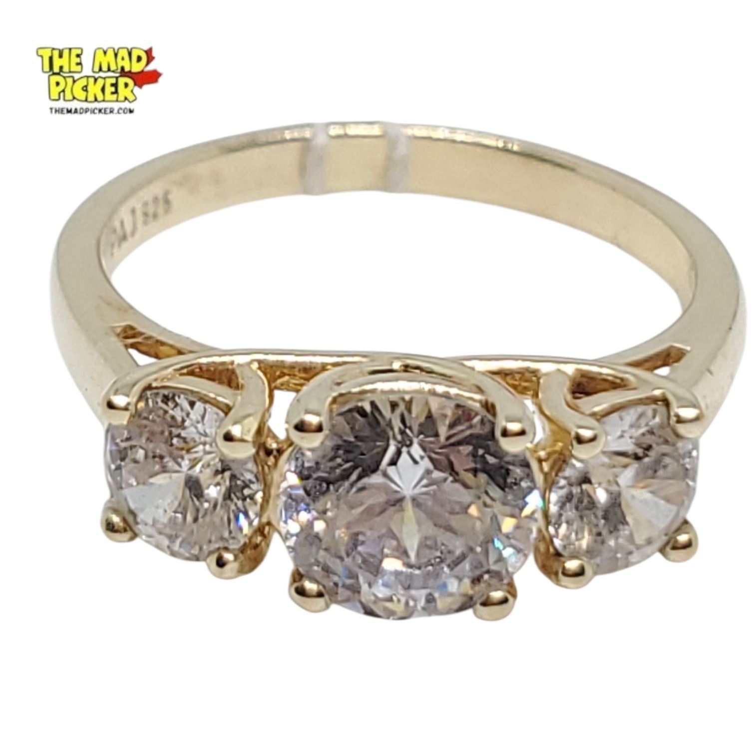 Gold Plated Sterling Silver 3-Gem CZ Ring by PAJ - Size 7 (6 mm center stone) - Total weight: 3.5 grams