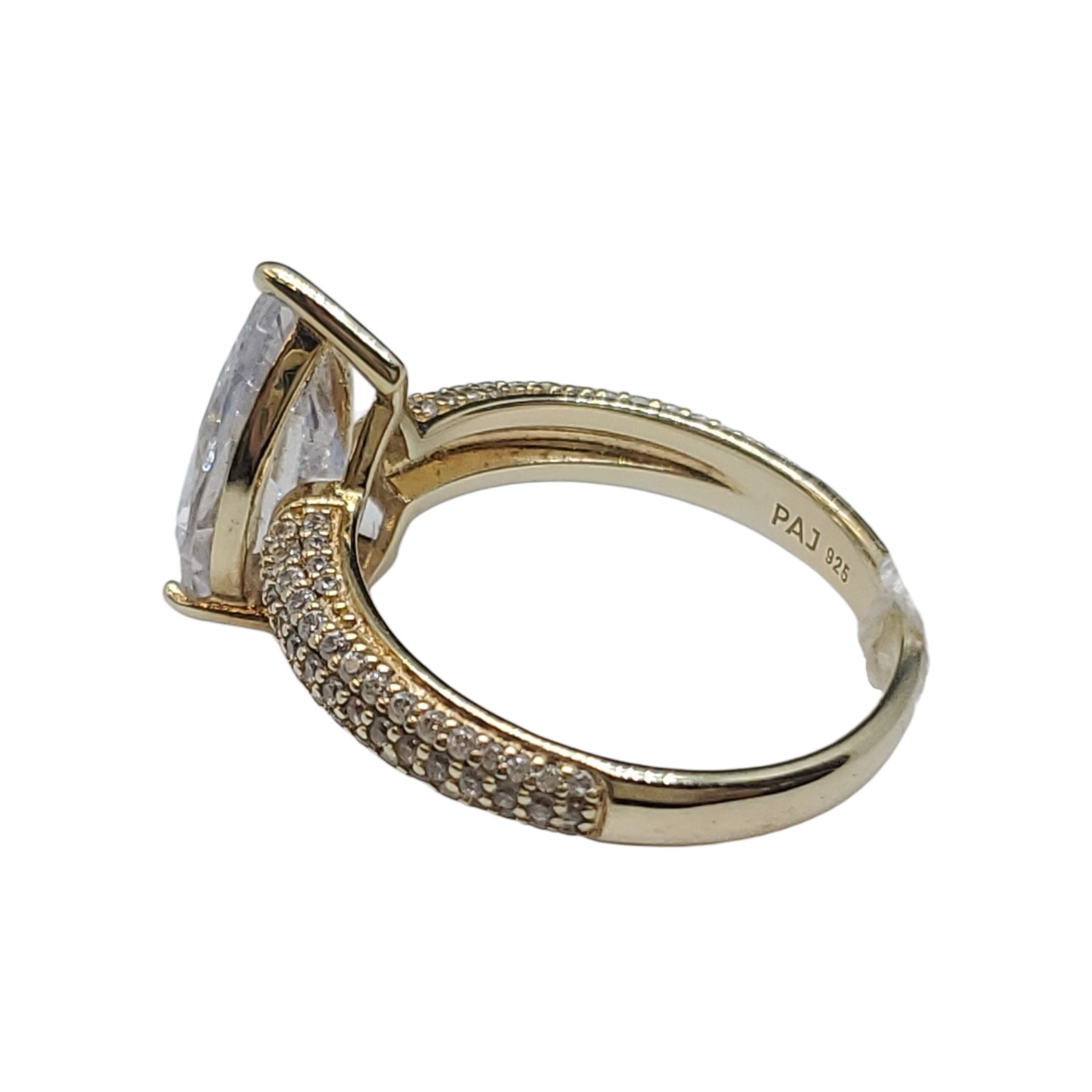 Gold Plated Sterling Silver Pear Shaped CZ Ring by PAJ - 7.9 x 12.5 mm center stone - Size 7 - Weight: 3.8 grams