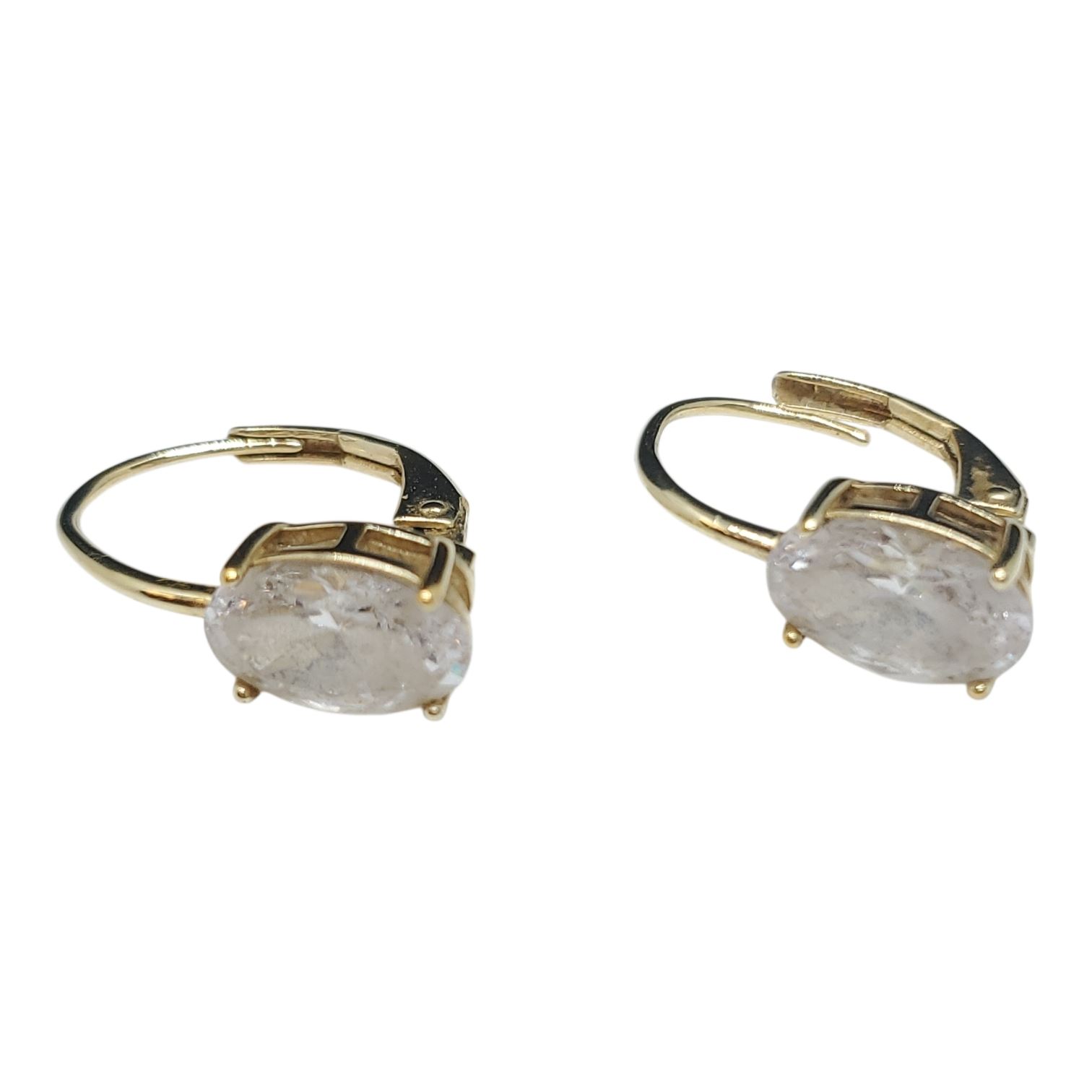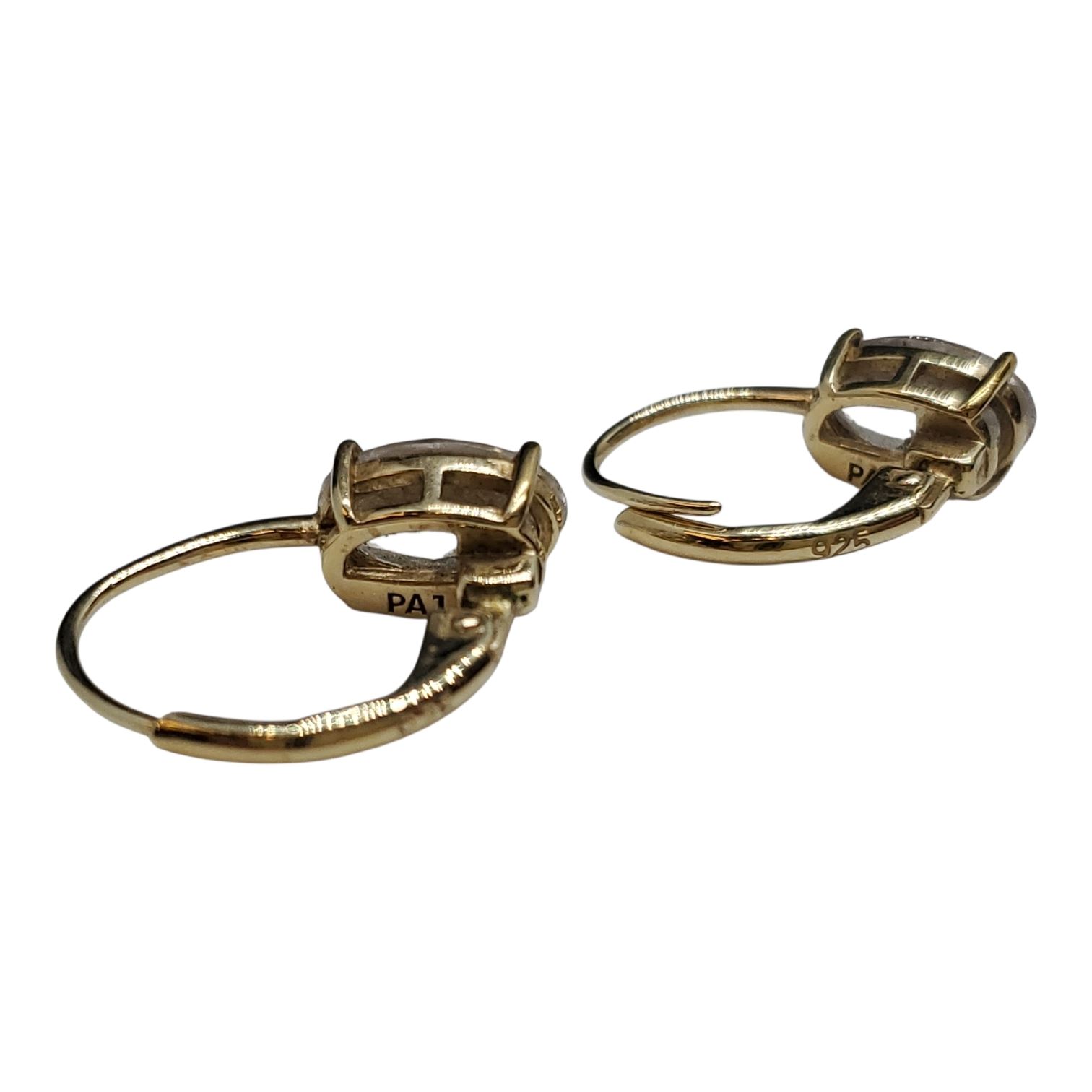 Gold Plated Sterling Silver White Topaz Earrings - 5.5mm x 8.5mm Oval gemstones - Lever backs - Total weight - 2.6 grams