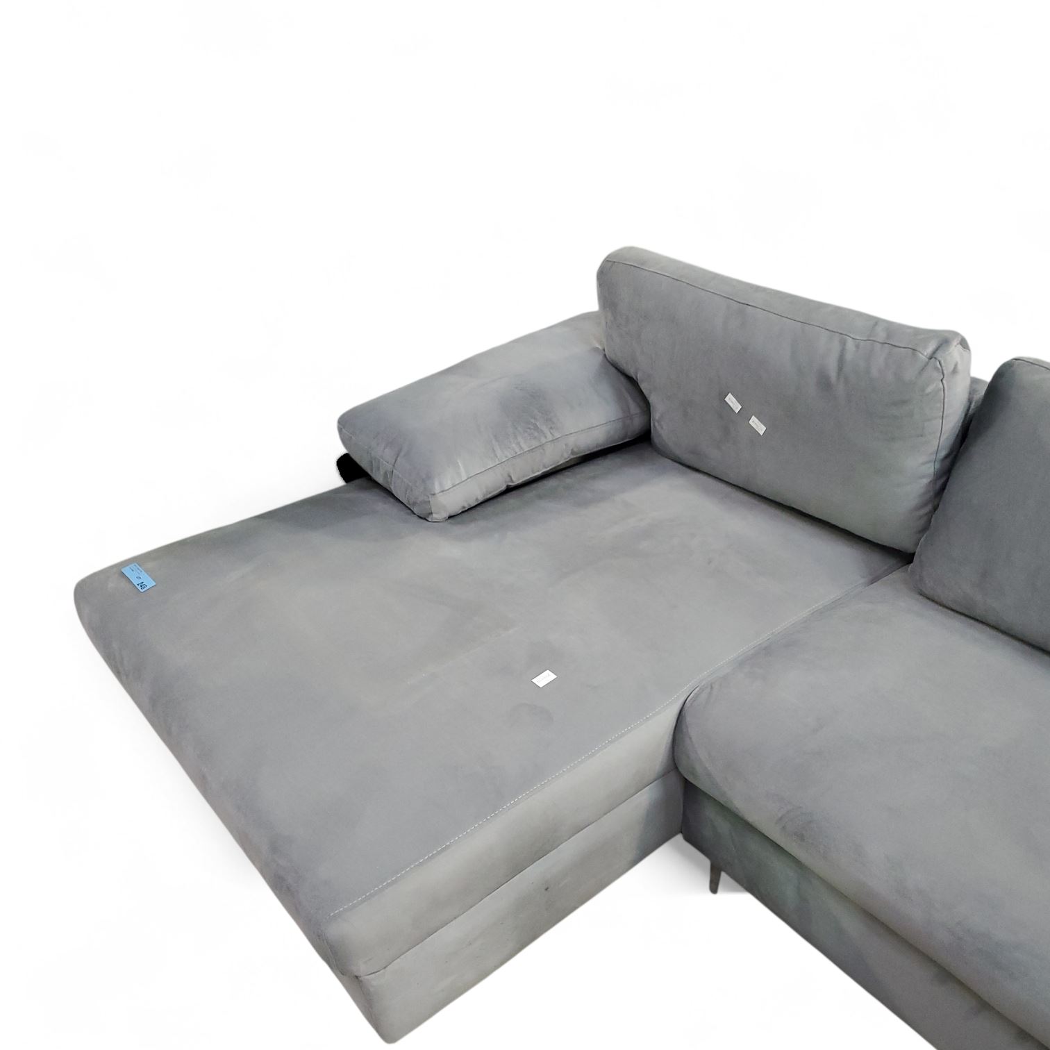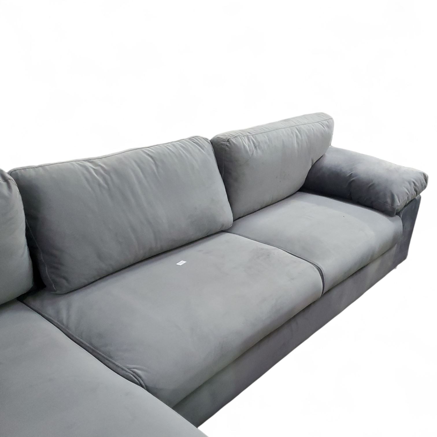 Gray Velvet Sectional Sofa with Left-Hand Chaise, H26" x W102" x D29"/58"