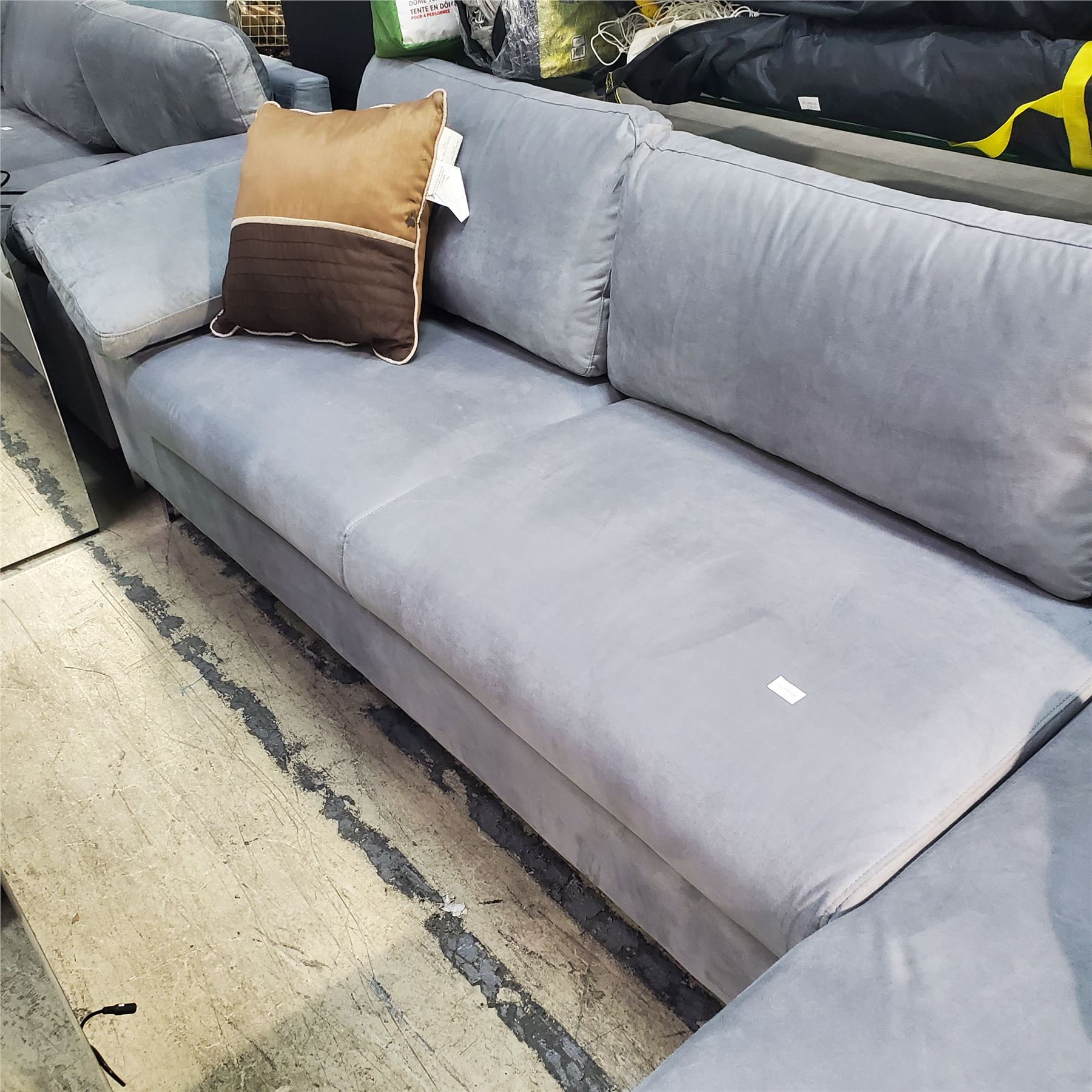 Gray Velvet Sectional Sofa with Right-Hand Chaise, H26" x W102" x D29"/58"
