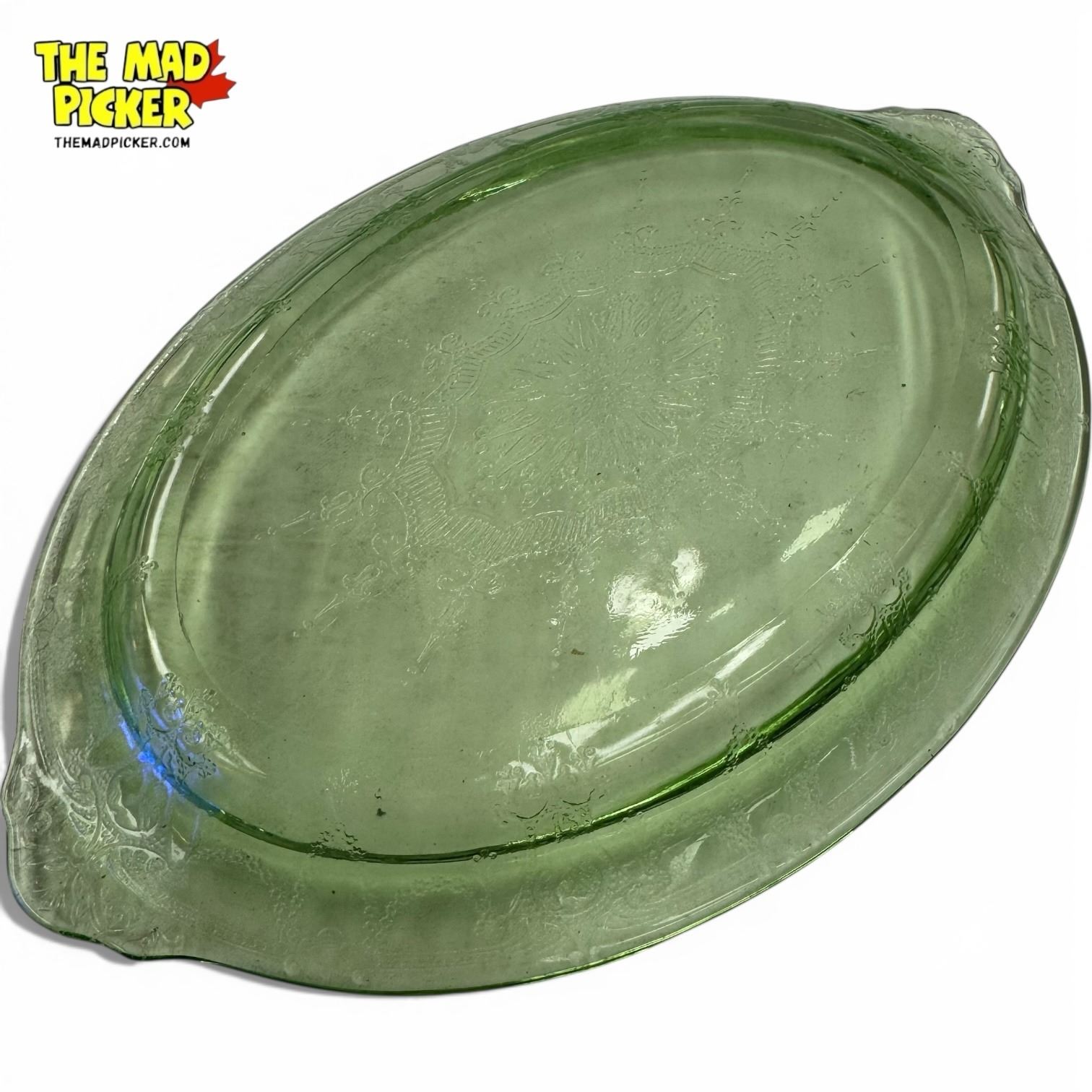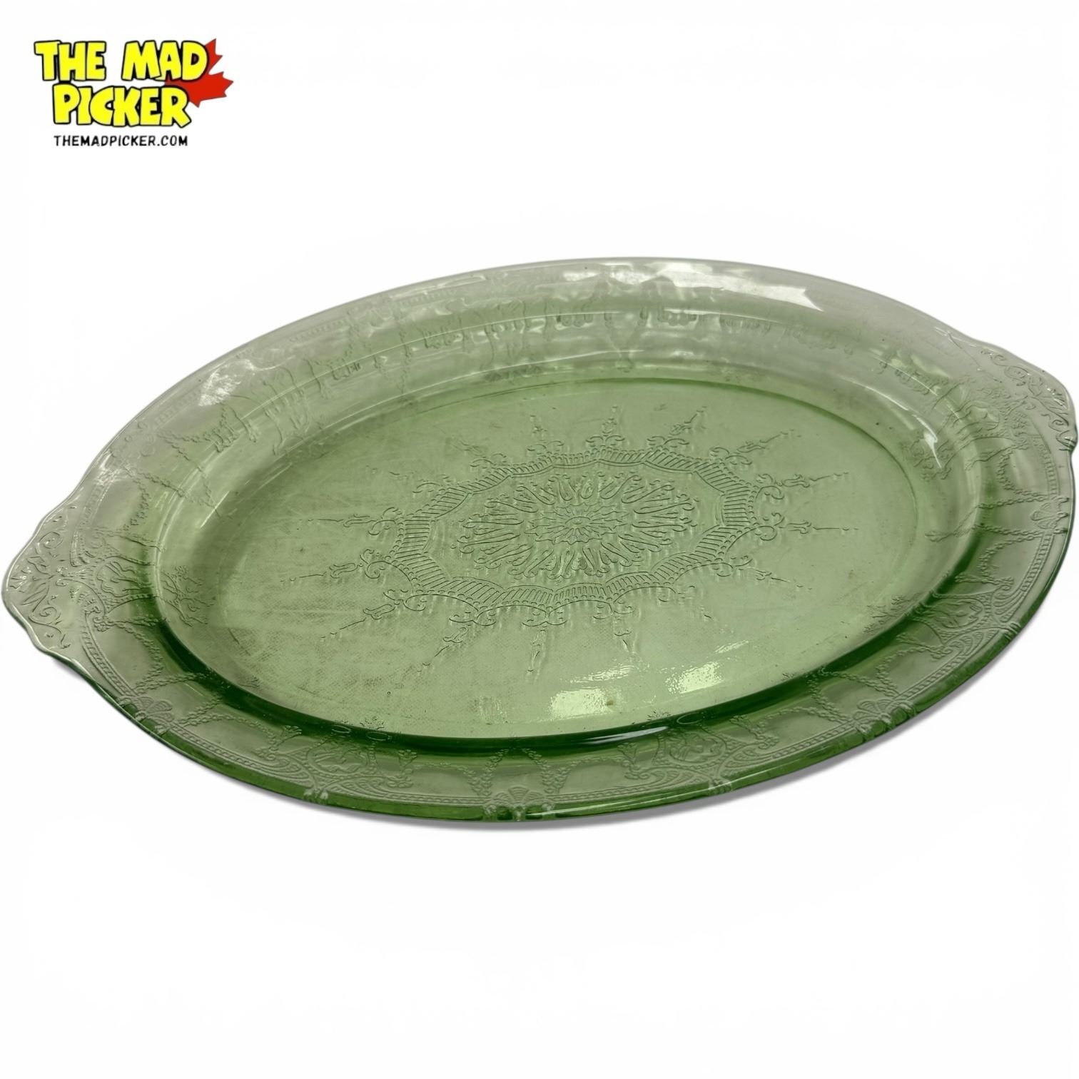 Green Uranium Depression Glass Platter - 8" x 12"